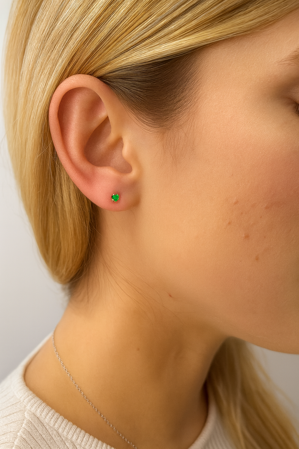 Timeless elegance meets vibrant color in these 0.08 carat emerald solitaire studs, crafted in 14K white, yellow, or rose gold. Each prong-set round emerald showcases rich green brilliance, secured with screw-back posts for all-day comfort. Perfect for everyday wear or meaningful gifting.