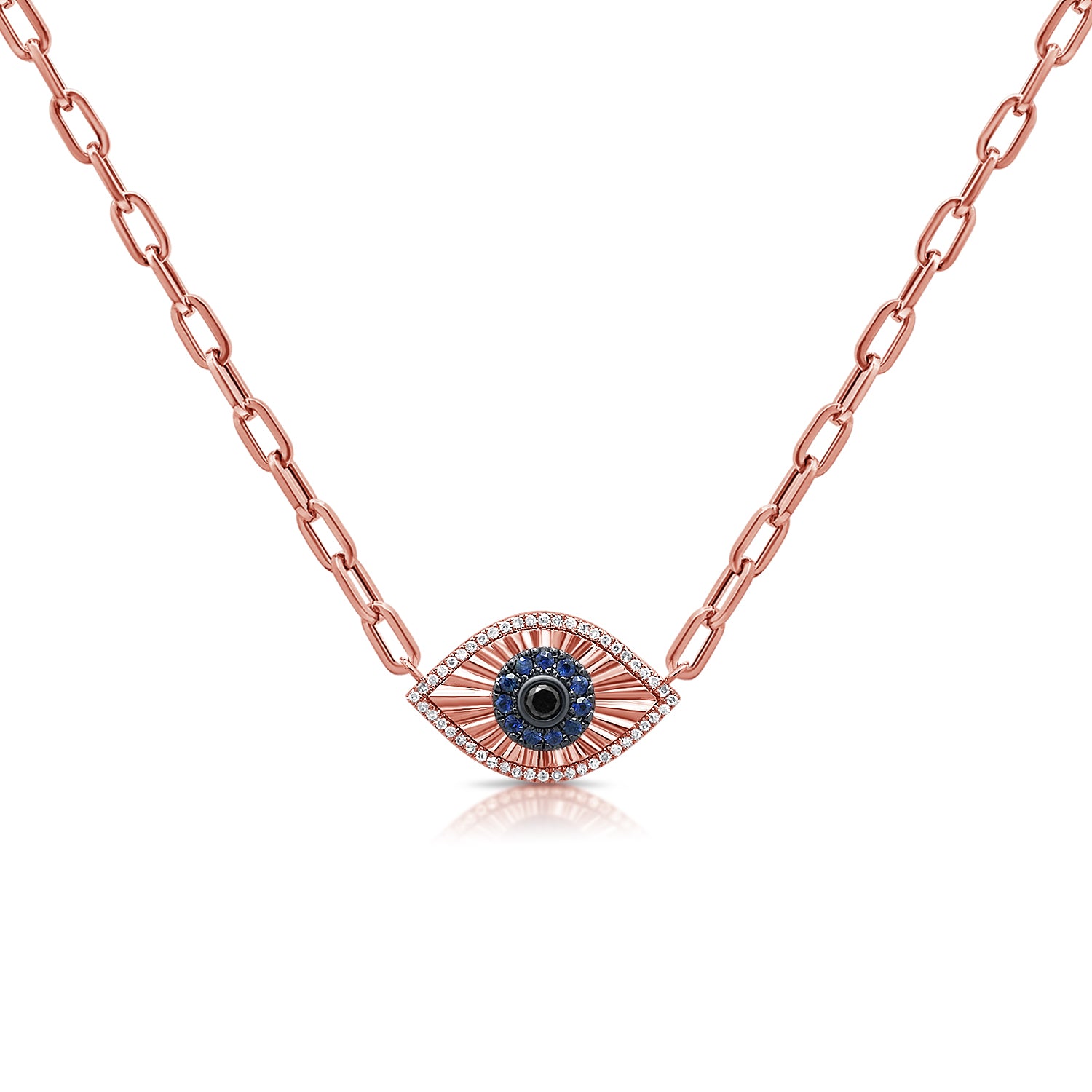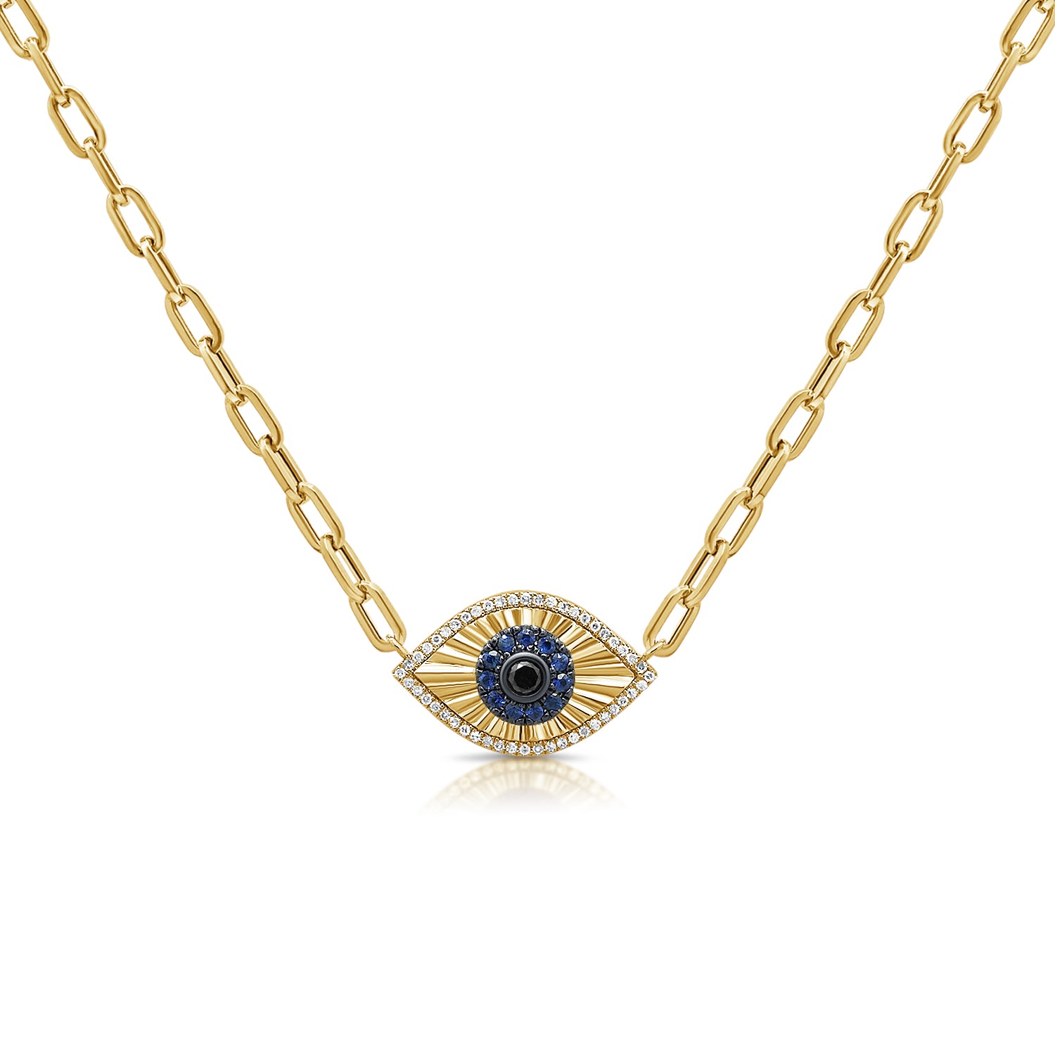 14K Gold Evil Eye Necklace with Sapphires & Diamonds
