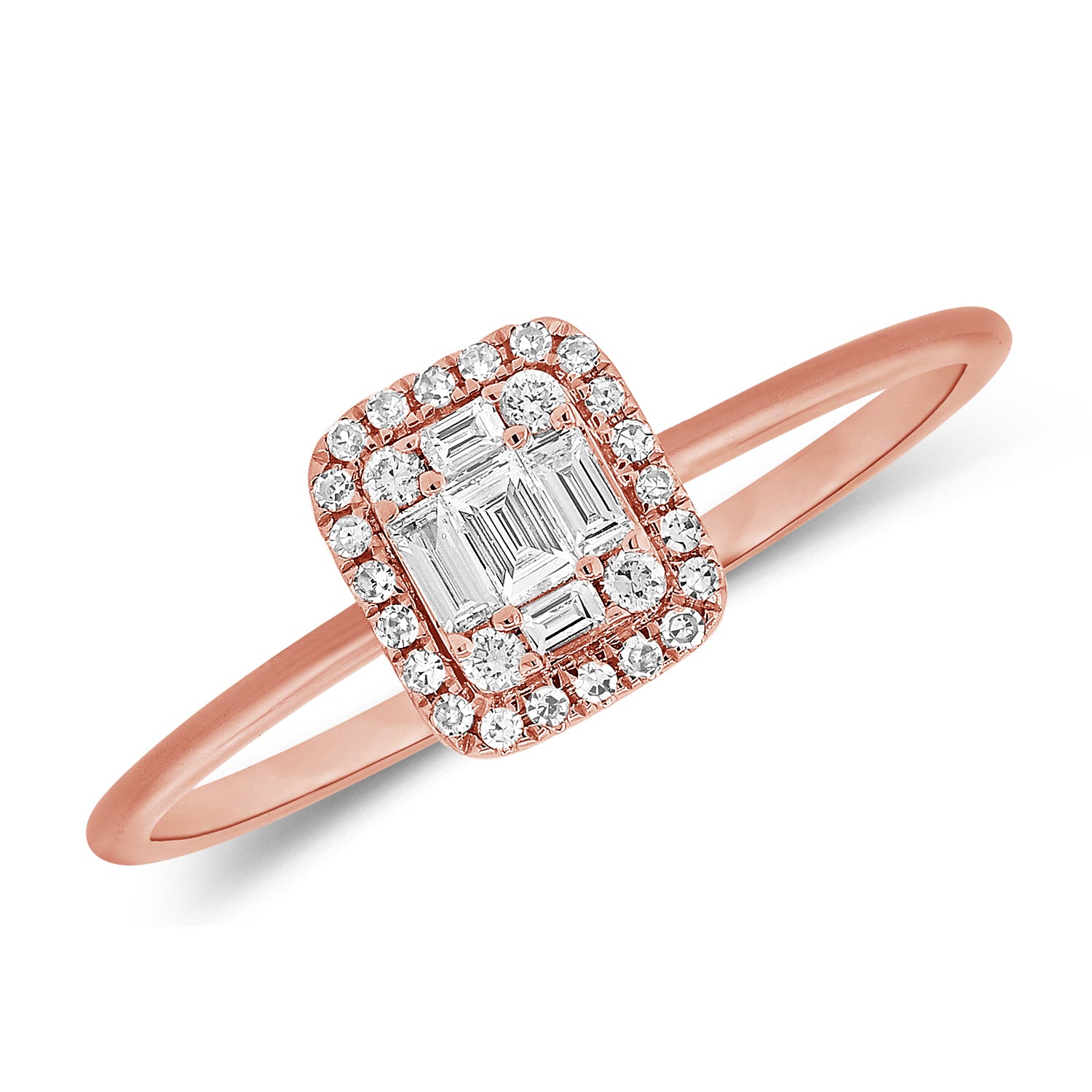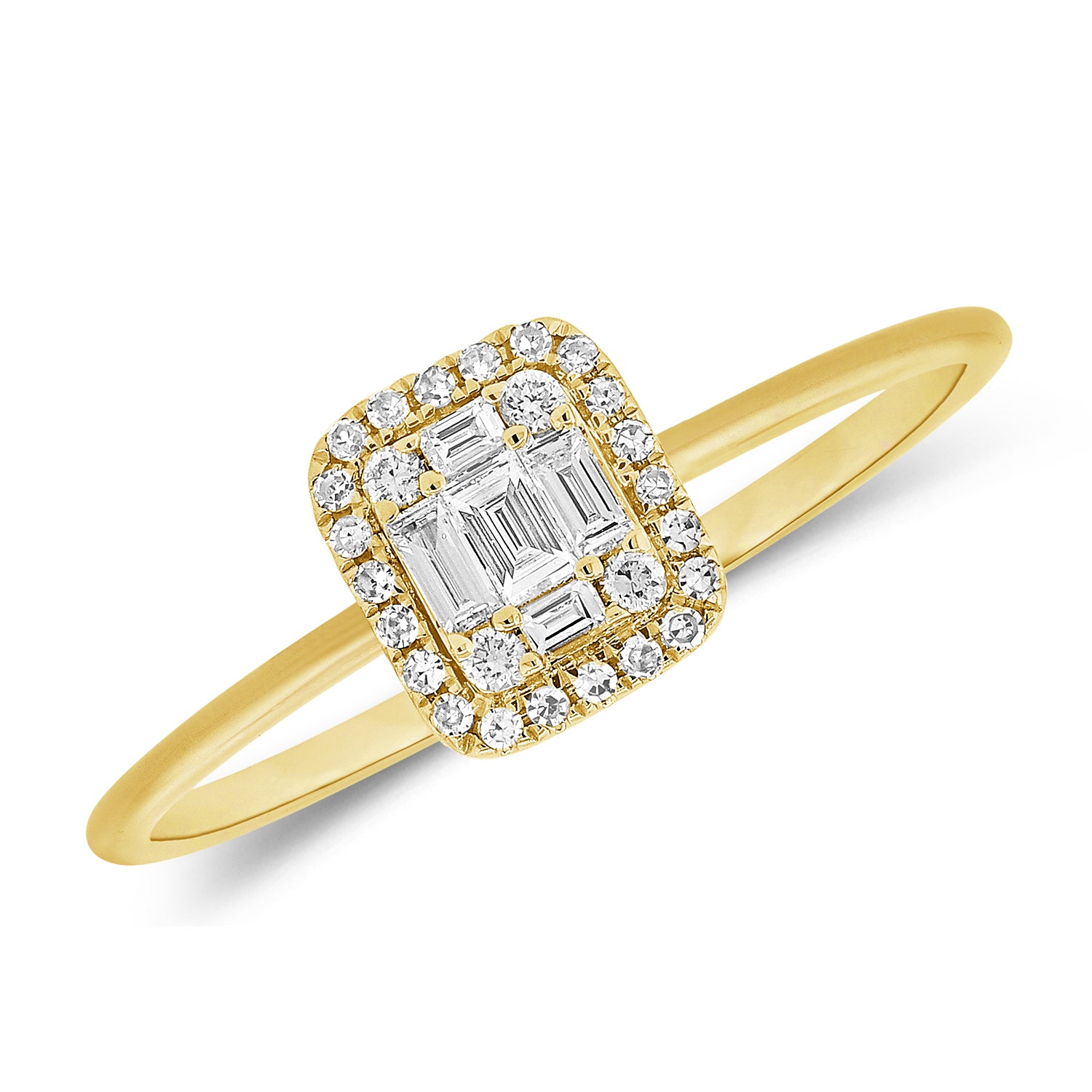 14K Gold Illusion Baguette & Round Diamond Ring (0.21ct) – White, Yellow, or Rose Gold