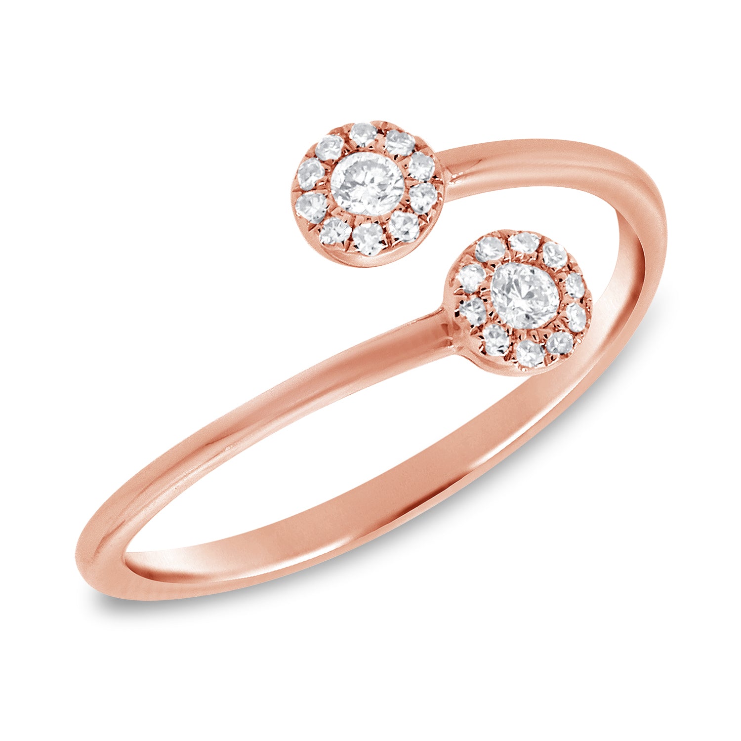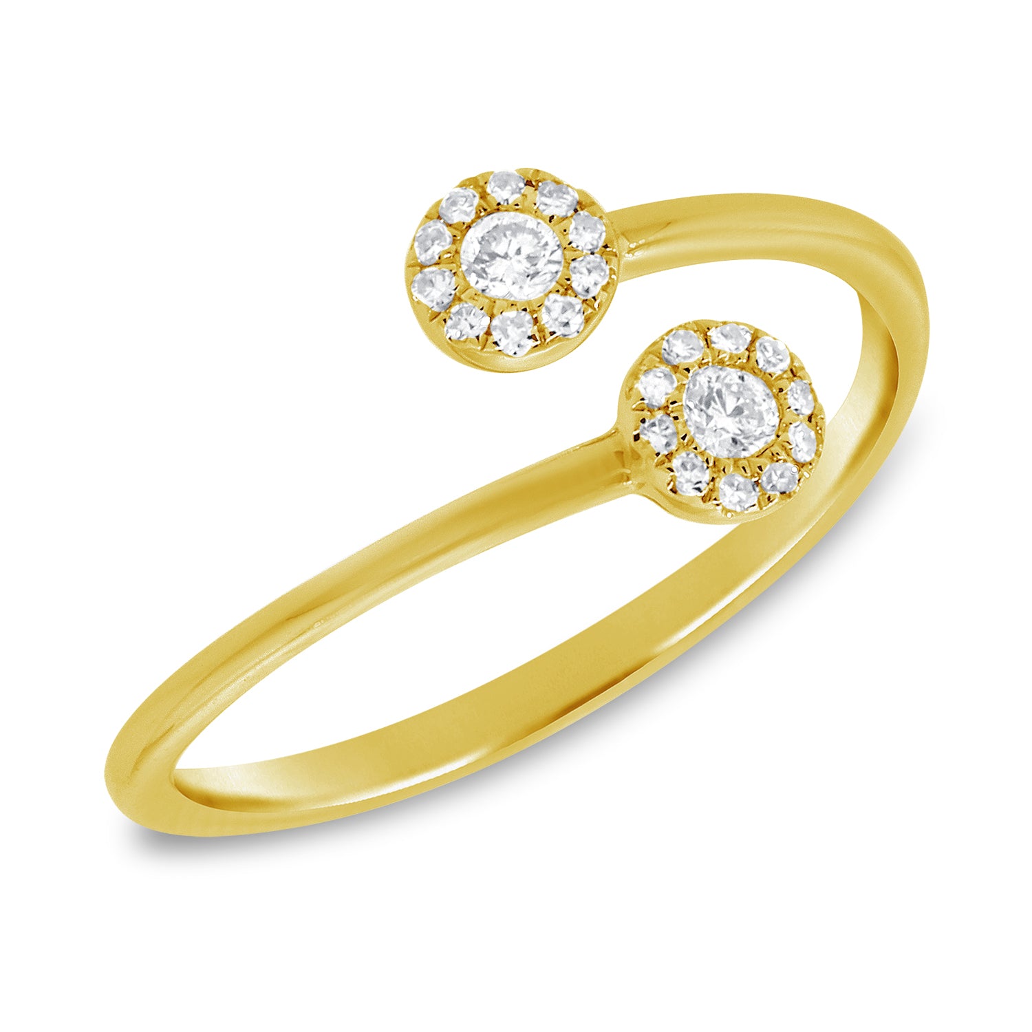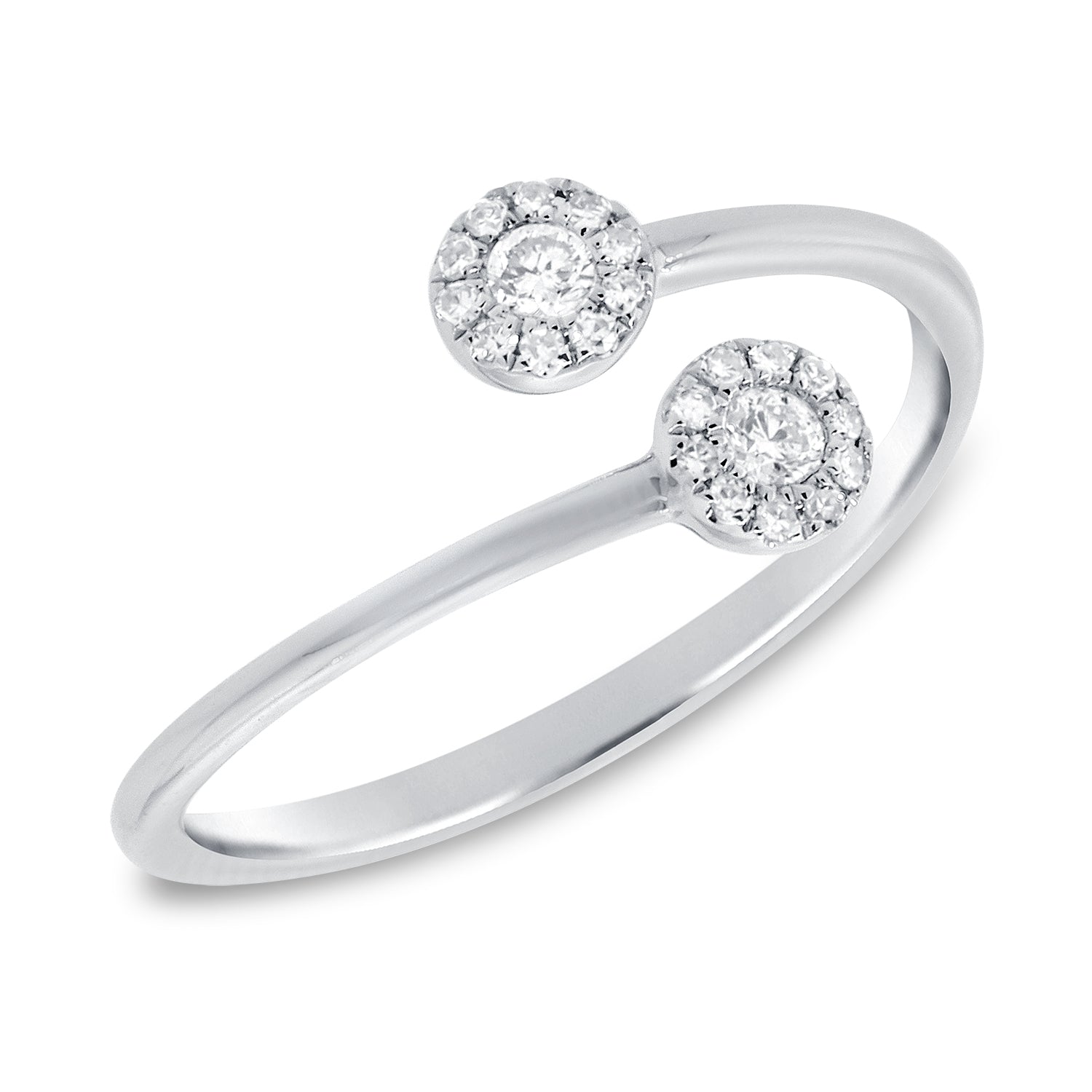 Modern elegance meets timeless sparkle with this 0.16-carat Diamond Illusion Wrap Ring. Designed with twin round diamond halos for maximum brilliance, this open wrap silhouette radiates sophistication. Available in 14K white, yellow, or rose gold for a chic, everyday statement.