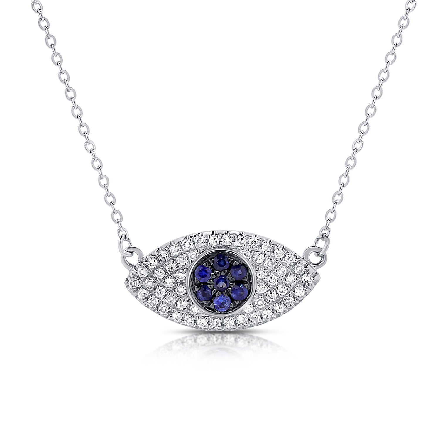 14K Gold Pave Diamond and Sapphire Evil Eye Necklace