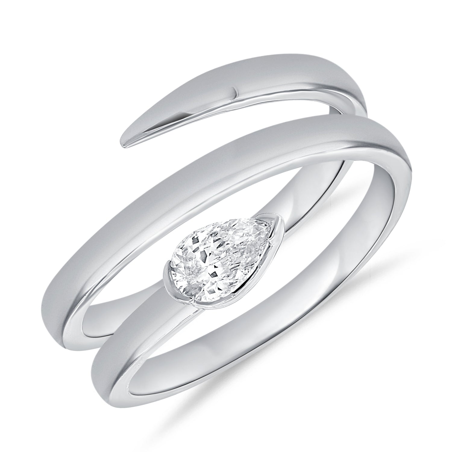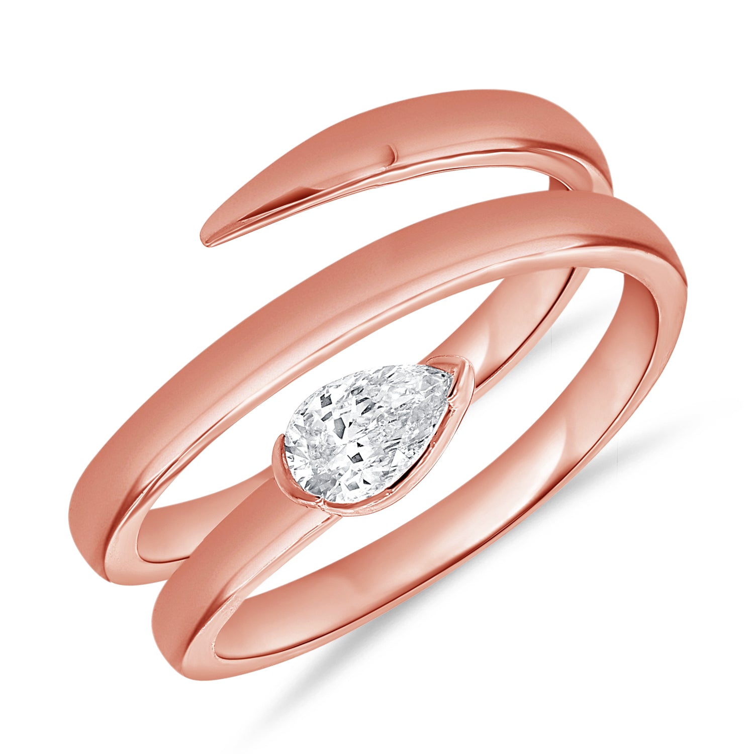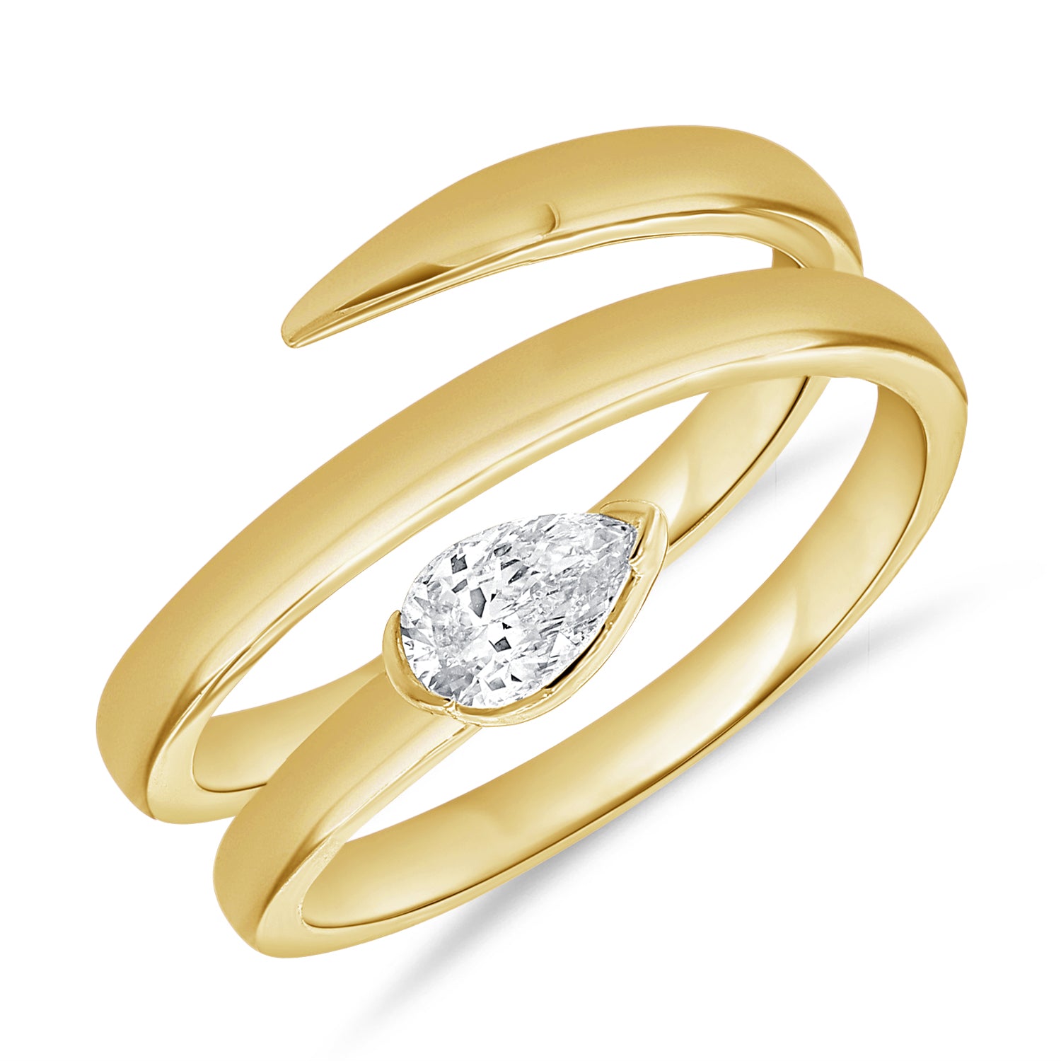 14K Gold Pear-Shaped Diamond Wrap Ring (0.29 Carat) – Bezel-Set Solitaire Band in White, Yellow, or Rose Gold