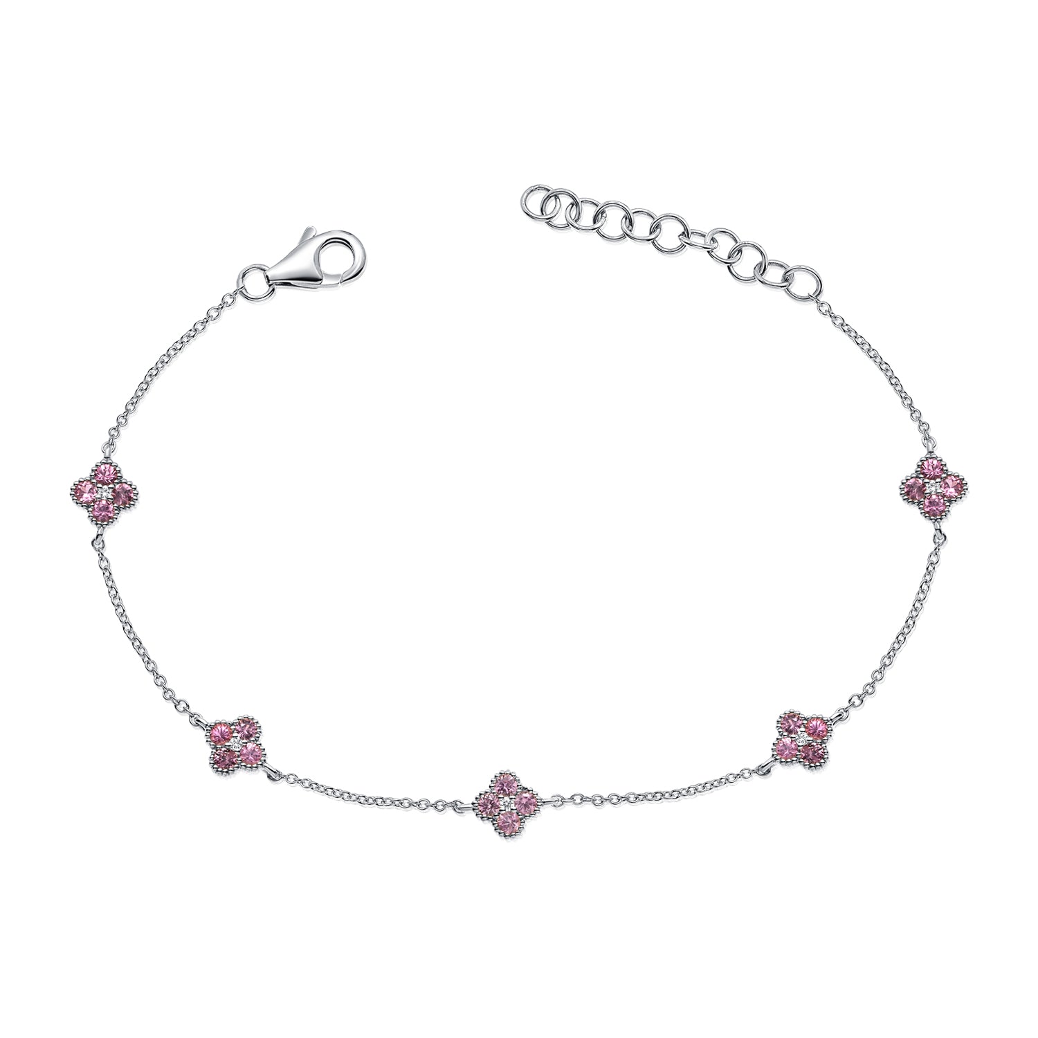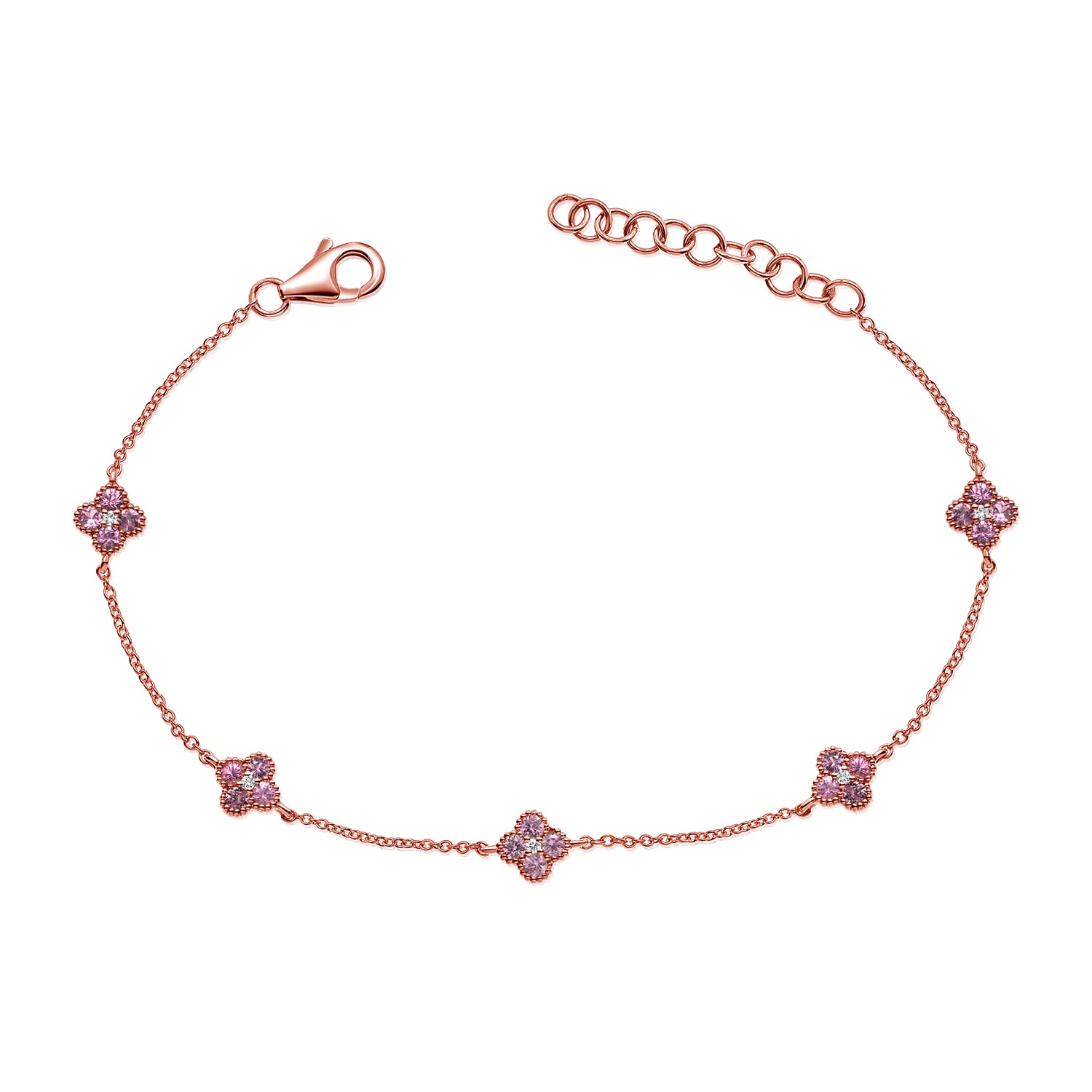 14K Gold Pink Sapphire & Diamond Clover Bracelet