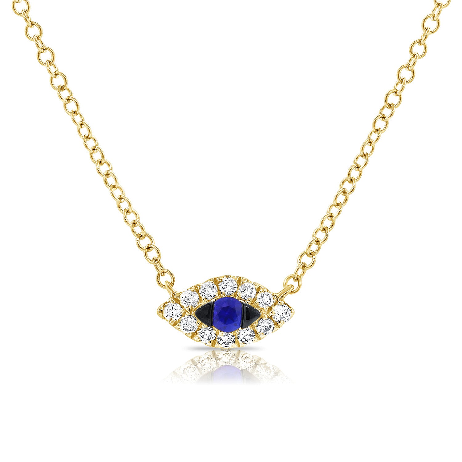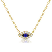 14K Gold Sapphire and Diamond Evil Eye Necklace