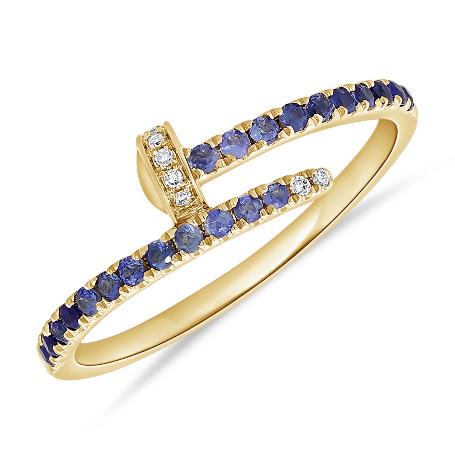 14K Gold Sapphire & Diamond Nail Ring – Modern Wrap Ring with 0.36 CTW Sapphires