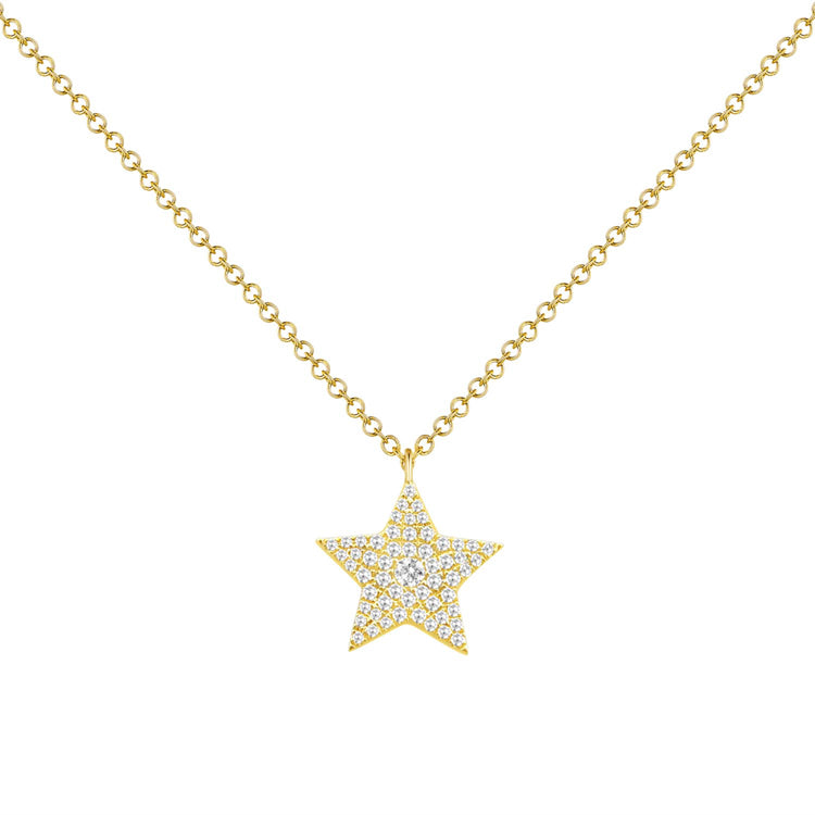 Shine brightly with our 14K Gold Star Necklace, a dazzling piece that captures the magic of the night sky. This captivating necklace features a star-shaped pendant, exquisitely crafted from radiant 14K gold. Encrusted with 0.20 carats of sparkling diamonds, the star twinkles with every movement, adding a touch of celestial elegance to your look. Suspended from a delicate 14K gold chain, this necklace is perfect for both everyday wear and special occasions. Whether as a gift or a personal indulgence, this necklace is a brilliant symbol of hope and inspiration.