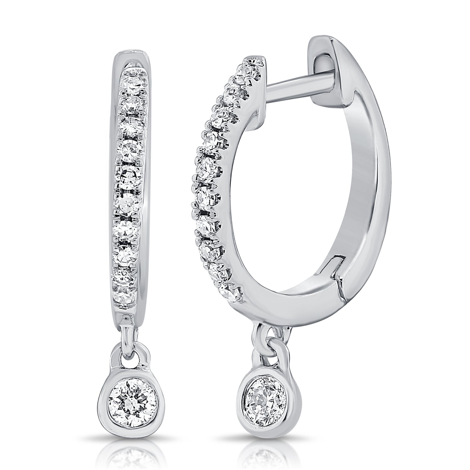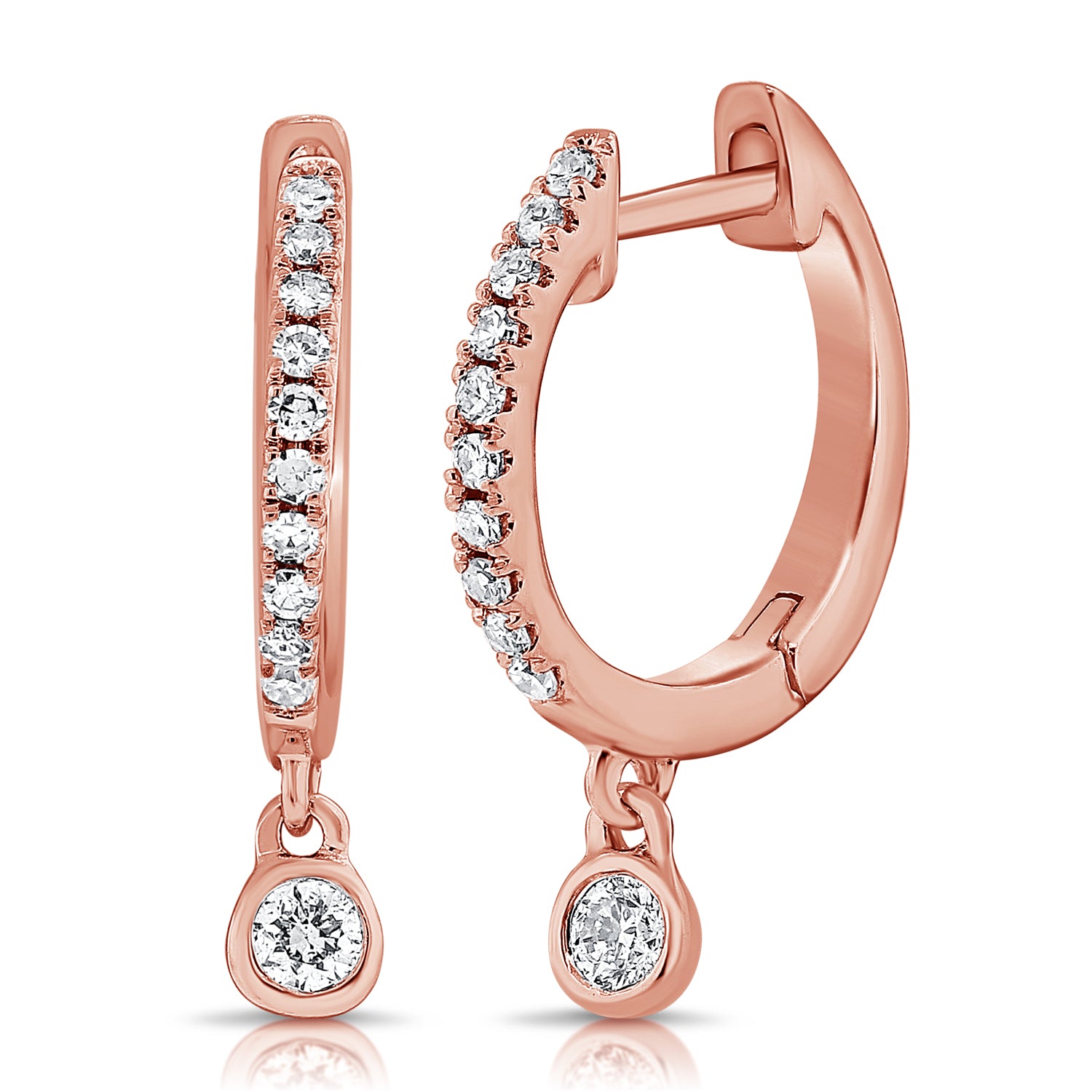 14K Gold Diamond Huggie Earrings with Dangling Charm – 0.10 Carats