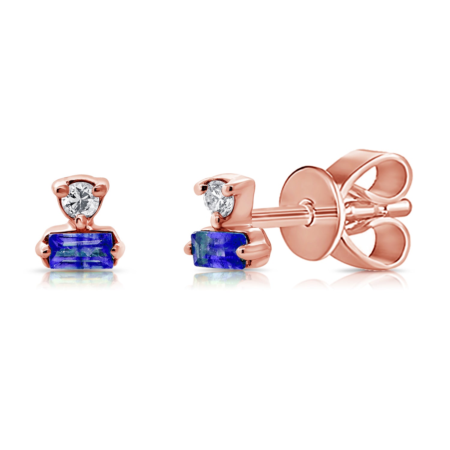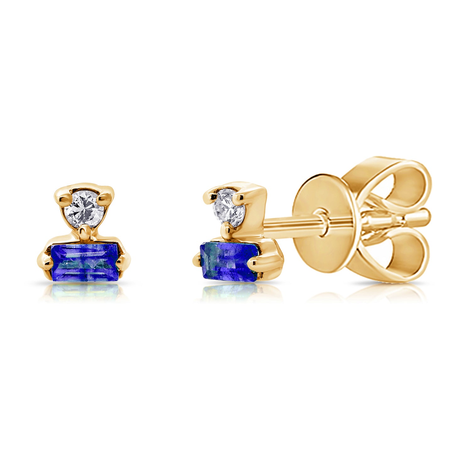 14K Gold Sapphire & Diamond Stud Earrings – 0.16ct Blue Sapphire with Diamonds