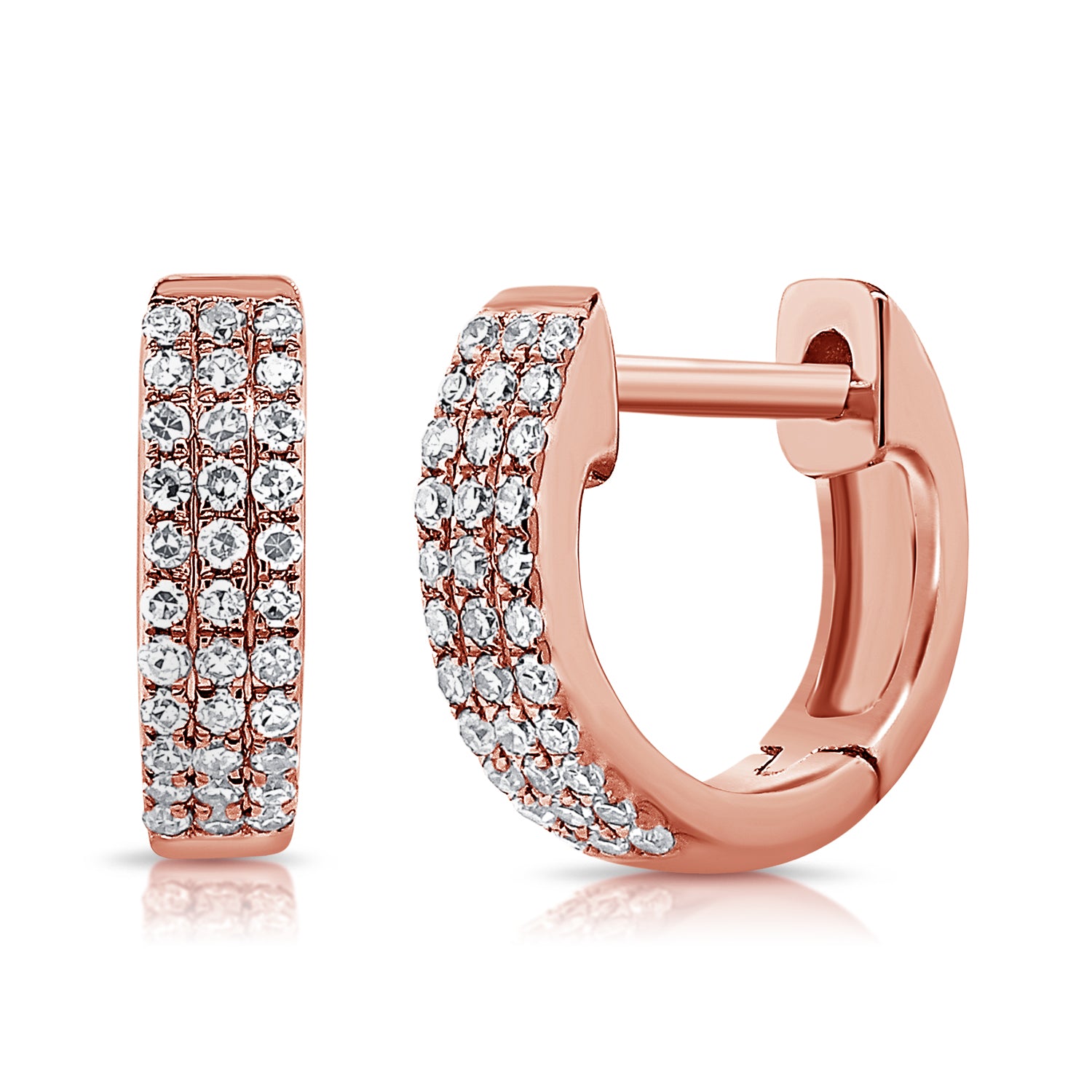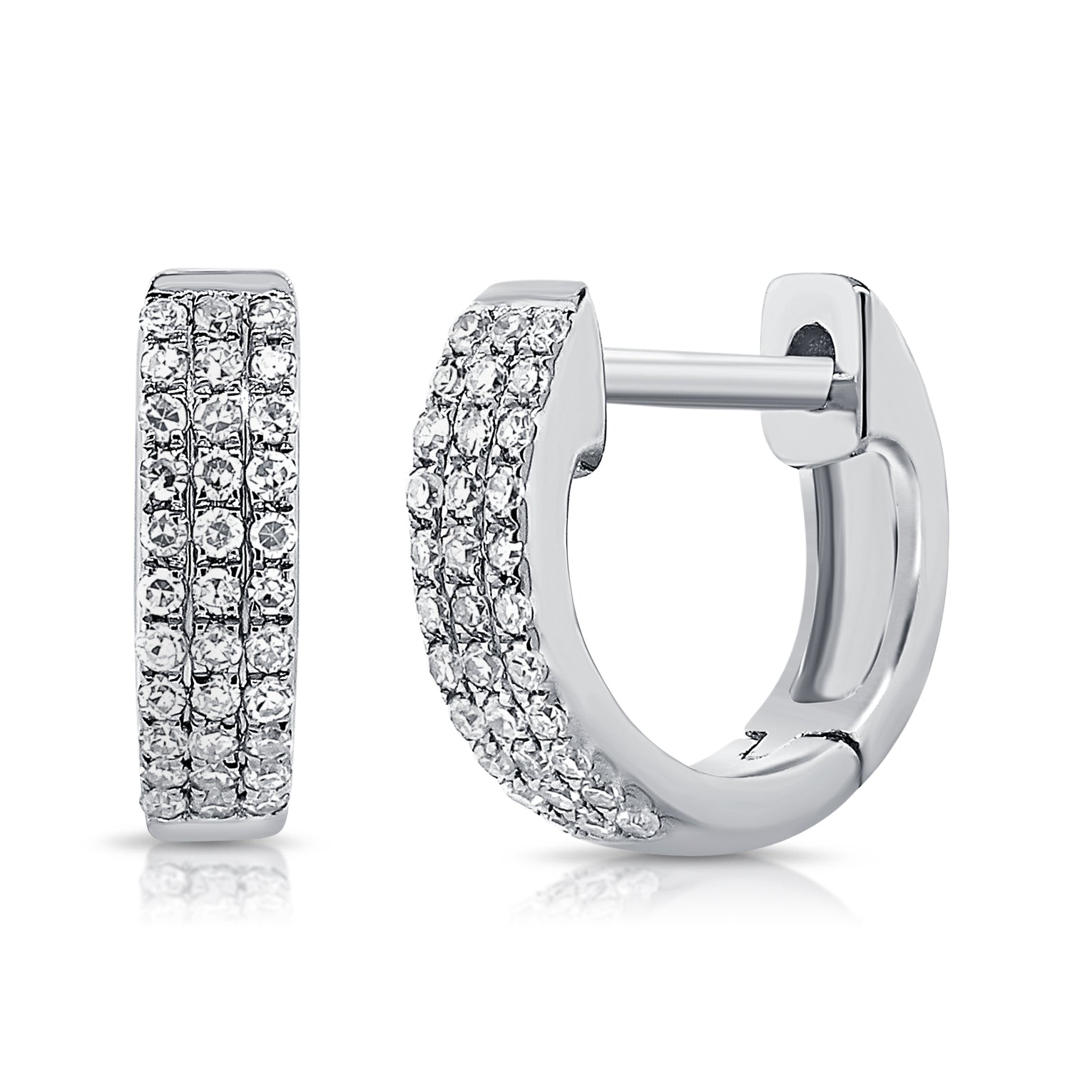 Elevate your style with these stunning 3 Row Diamond Huggie Earrings, expertly crafted in 14K gold. Featuring three rows of dazzling diamonds totaling 0.17 carats, these earrings offer a brilliant sparkle that enhances their sleek and modern design. Available in 14K white, yellow, or rose gold, these versatile huggies are perfect for adding a touch of luxury to both casual and formal outfits. The comfortable and secure huggie closure makes them ideal for all-day wear, while the layered diamond rows add a sophisticated dimension to your look. A chic addition to any jewelry collection, these earrings are sure to make a statement.