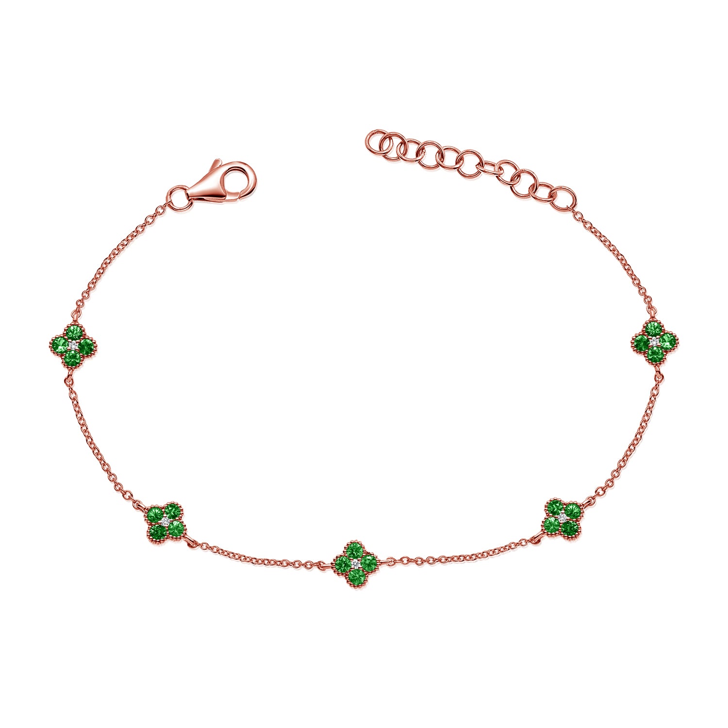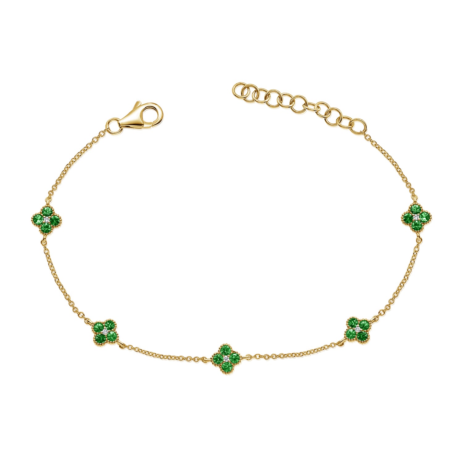Diamond & Emerald Clover Bracelet made in 14K Gold