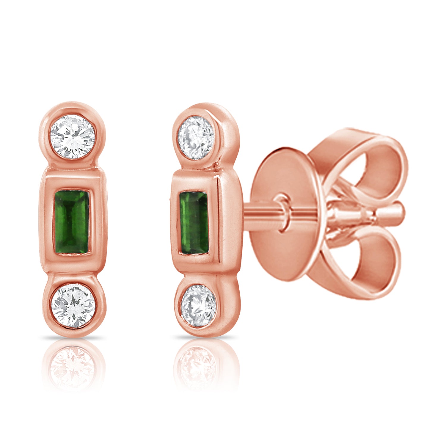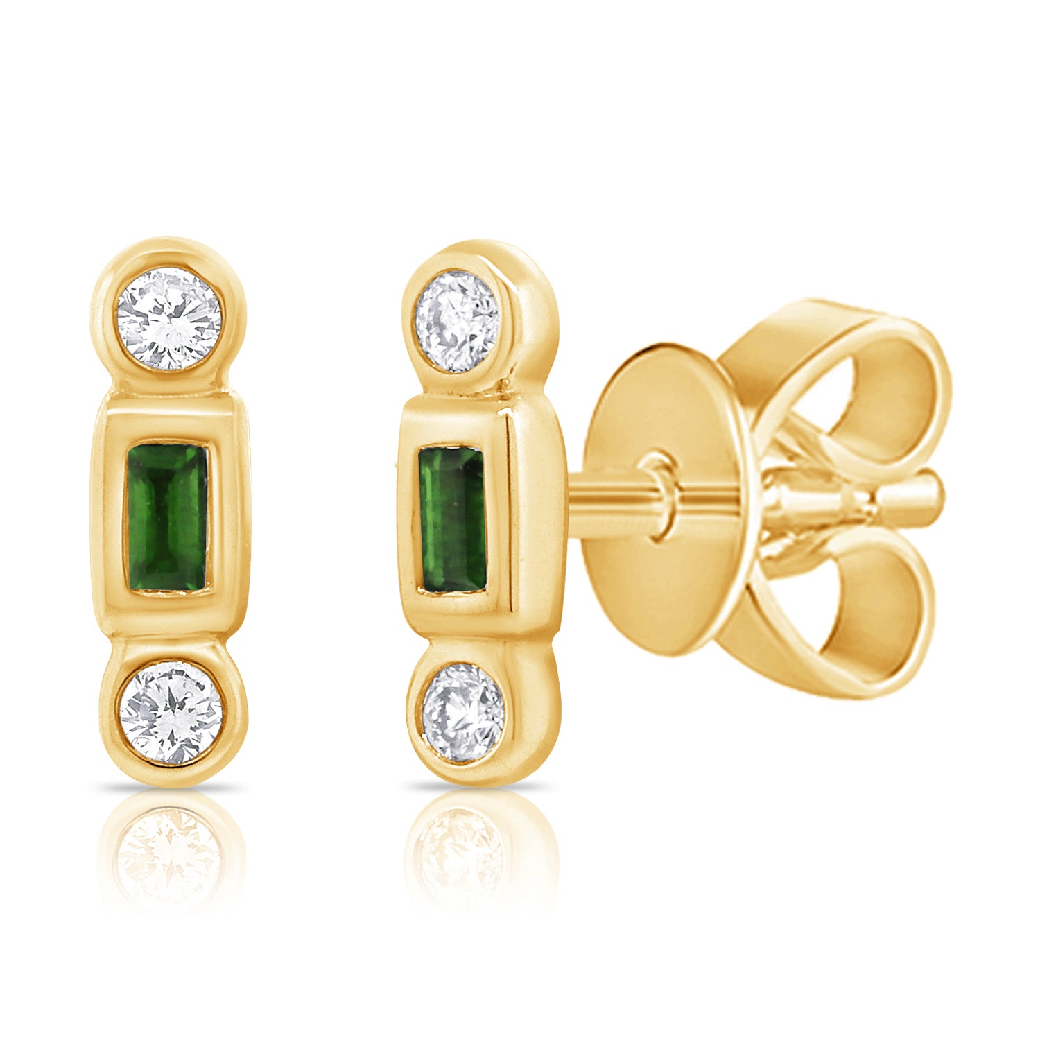 Add a touch of elegance with these 14K Gold Emerald & Diamond Stud Earrings, featuring vibrant emeralds paired with shimmering round diamonds totaling 0.08 carats. Meticulously crafted for timeless style, these studs offer a refined, luxurious look perfect for any occasion. Available in 14K yellow, white, or rose gold.