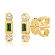 14K Gold Designer Emerald & Diamond Stud Earrings