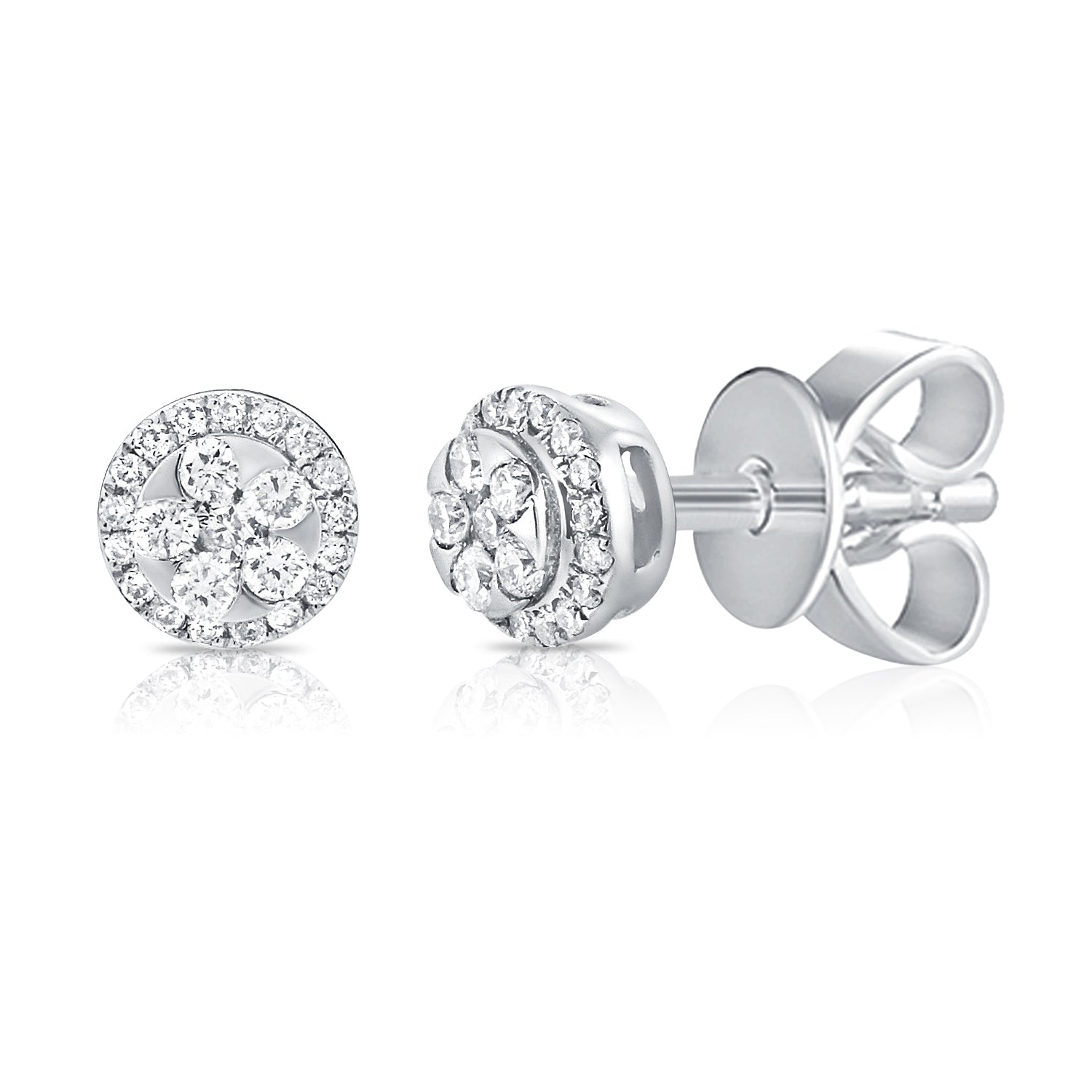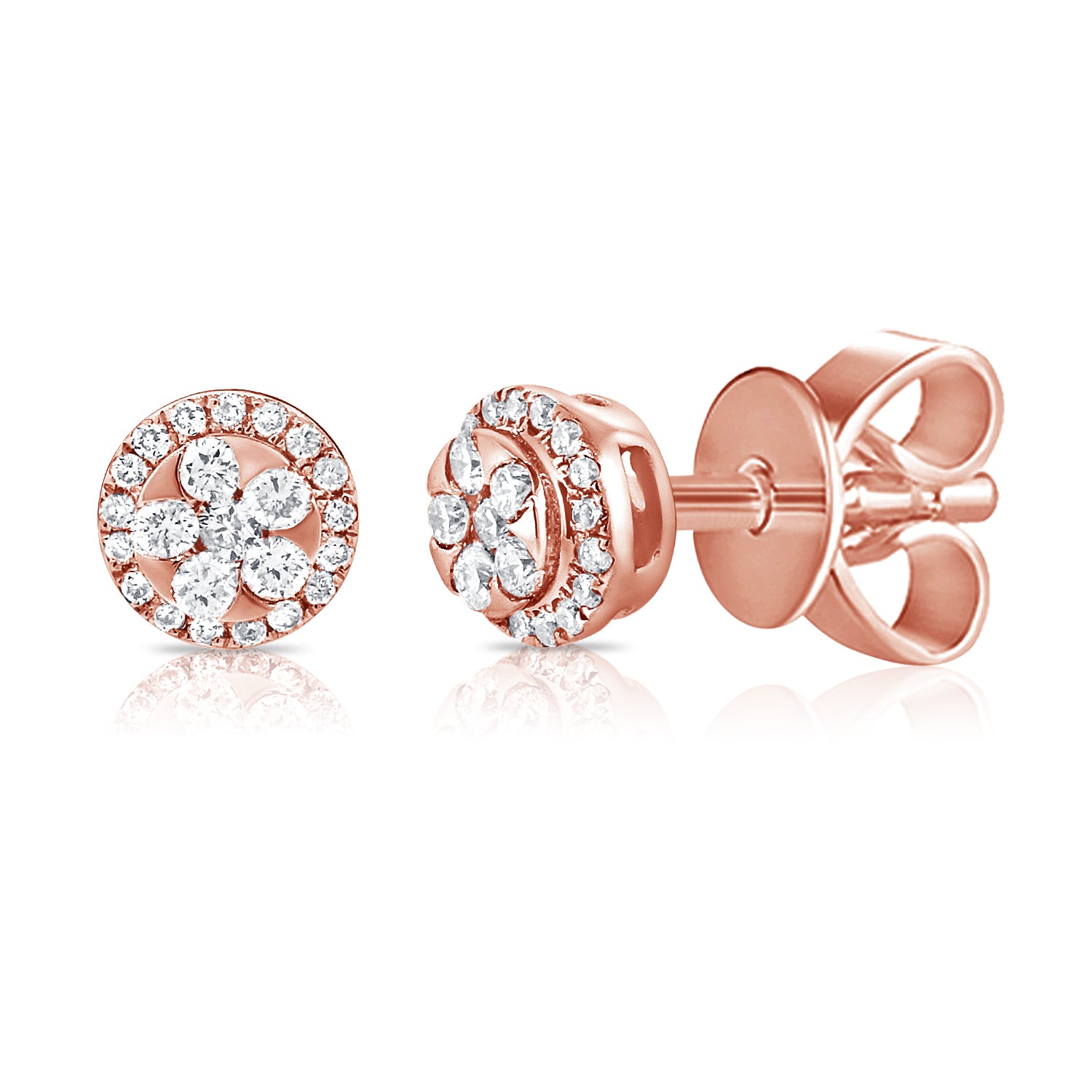 14K Gold Diamond Floral Stud Earrings | 0.16ct Cluster Flower Studs