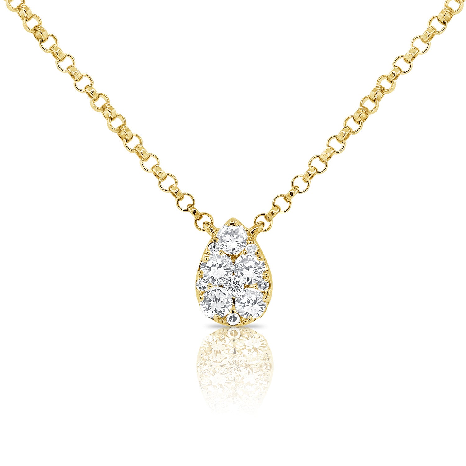 Discover the elegance of the 14K Gold Diamond Pear Necklace, a stunning piece that seamlessly combines grace and luxury. This necklace features a beautifully designed pear-shaped pendant, crafted from lustrous 14K gold and adorned with sparkling diamonds totaling 0.19 carats. The pear-shaped pendant captures light from every angle, creating a captivating and sophisticated glow. Suspended from a delicate gold chain, this necklace offers a timeless and versatile accessory that can effortlessly elevate any outfit. Perfect for both everyday wear and special occasions, this piece embodies refined beauty and exceptional craftsmanship.