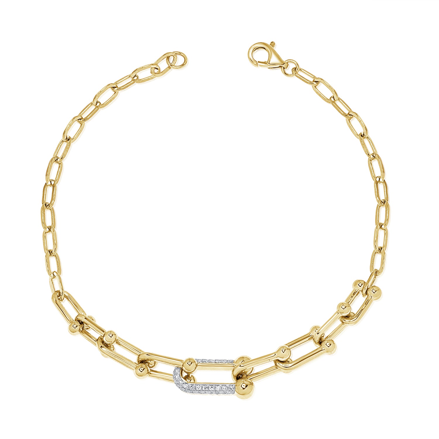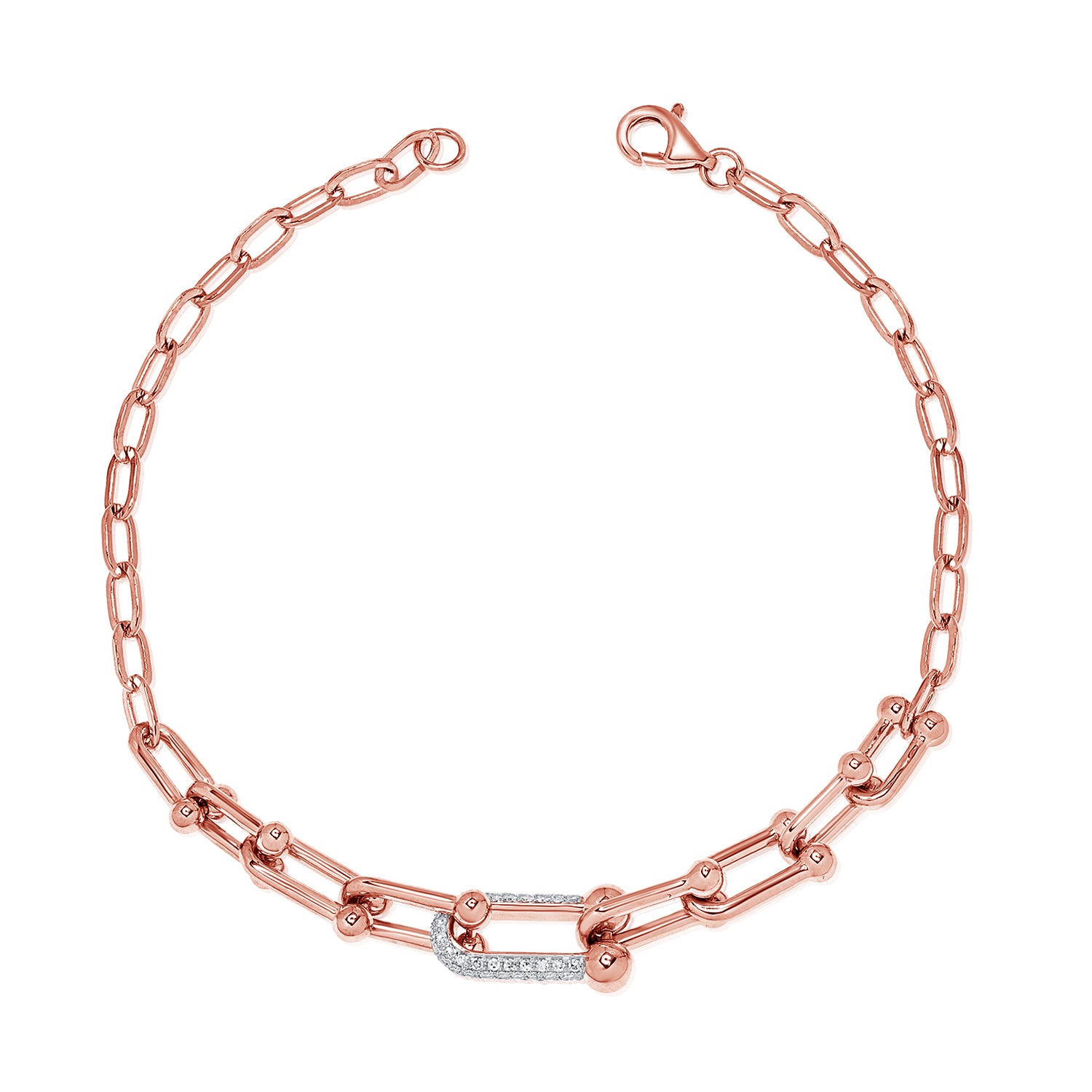 Add modern elegance to your style with this 0.28 carat diamond link bracelet, crafted in 14K gold. Featuring an 18-inch paperclip chain with a pav diamond link, its perfect for layering or solo wear. Available in rose, white, or yellow gold-a refined piece for any jewelry collection.