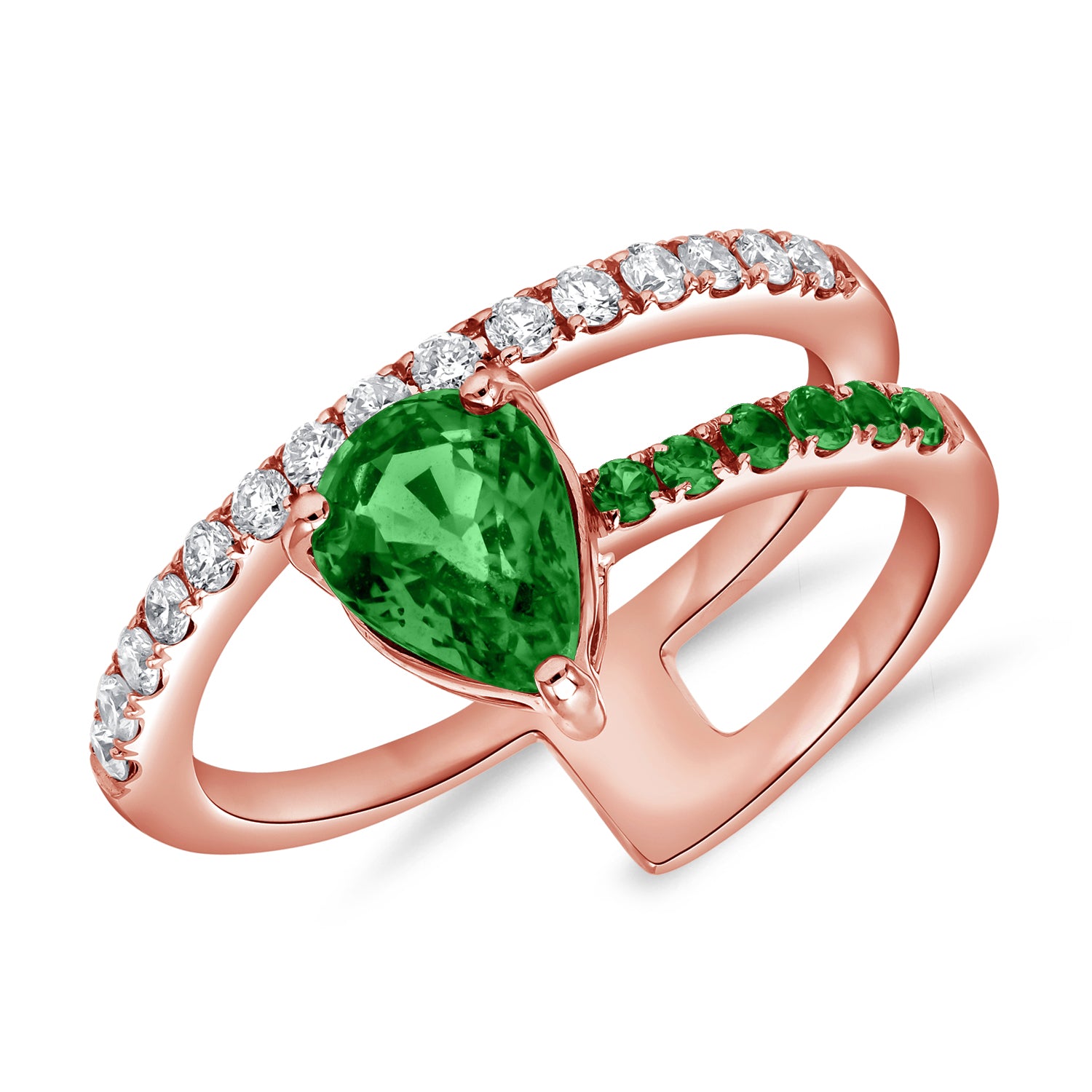 Make a bold statement with our 14K Gold 1.44ct Emerald & Diamond Wrap Ring, featuring a vivid pear-shaped emerald framed by twin rows of brilliant diamonds and emeralds. Set on a sleek split-shank wrap band, this vibrant design is available in 14K yellow, white, or rose gold, adding elegant color and modern sophistication to any collection.
