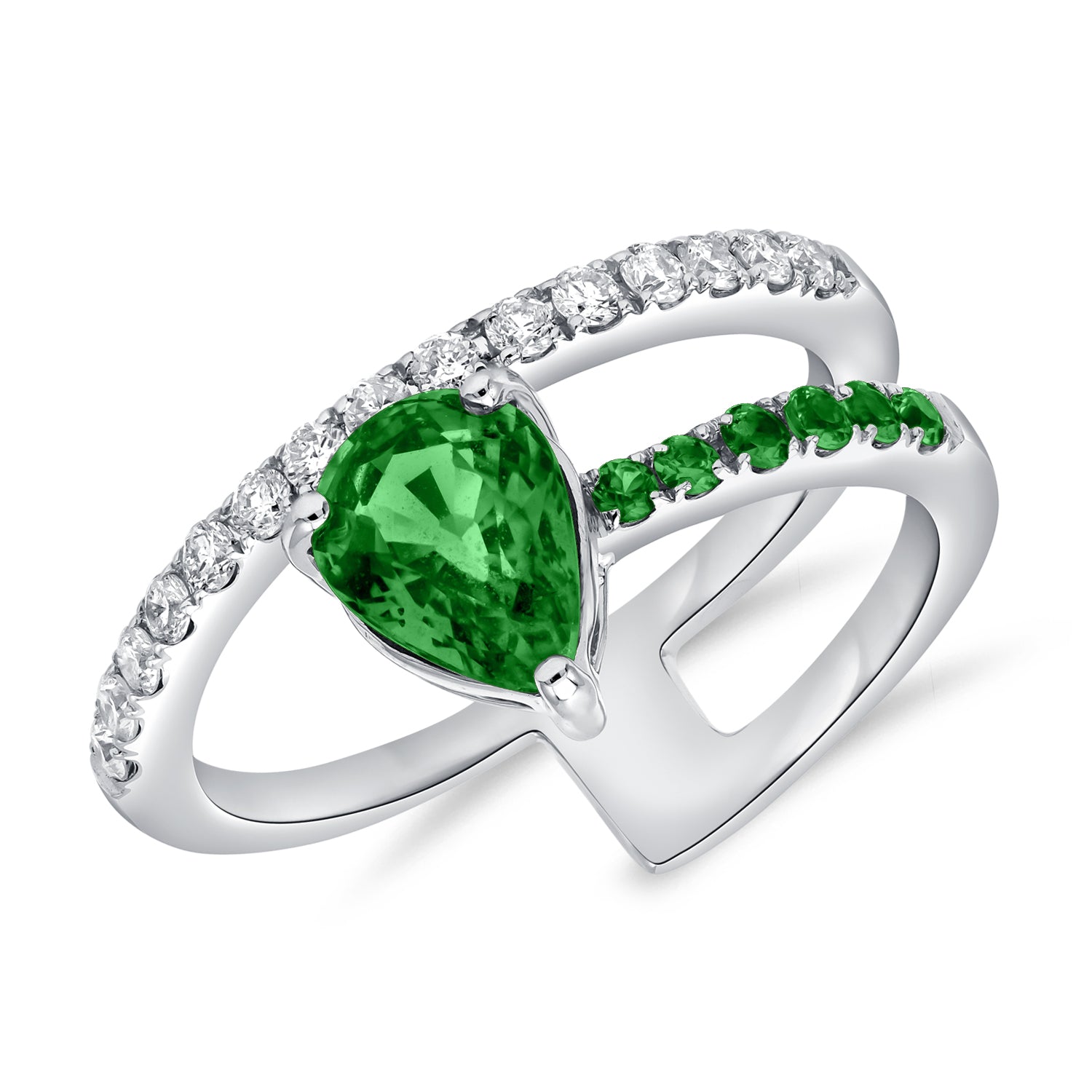 14K Gold 1.44ct Pear-Shaped Emerald & Diamond Wrap Ring – Split Shank Emerald Ring