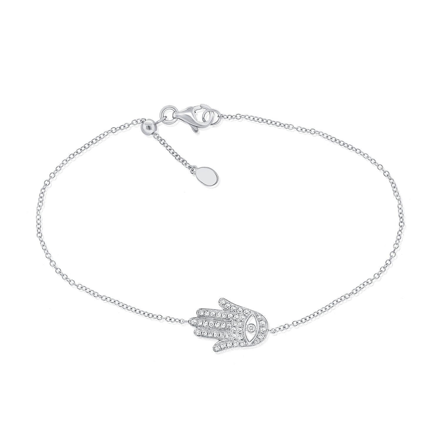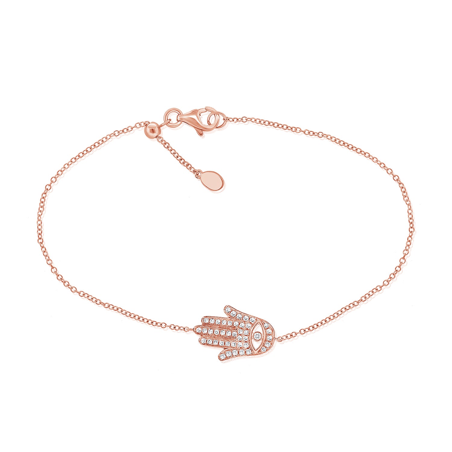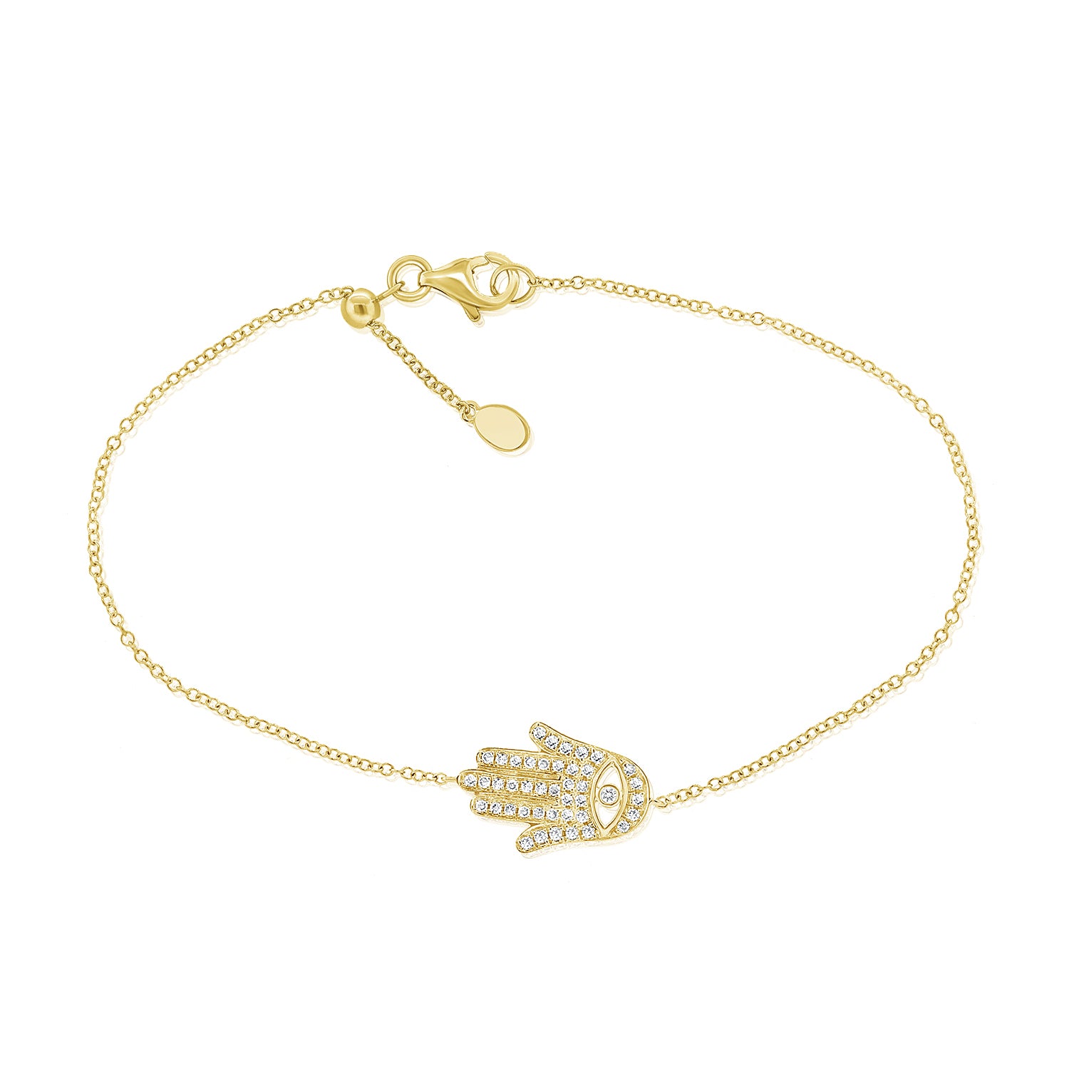 Protect and inspire with this stunning 14K Gold Hamsa Bracelet. Featuring a delicately crafted Hamsa charm, this bracelet sparkles with 0.20 carats of brilliant diamonds, accentuating its intricate design. Available in white, yellow, or rose gold, the piece is completed with an adjustable chain for a comfortable and secure fit. A symbol of protection, luck, and blessings, this bracelet is perfect for everyday wear or as a thoughtful gift for someone special. Let this timeless design bring both style and meaning to your jewelry collection.