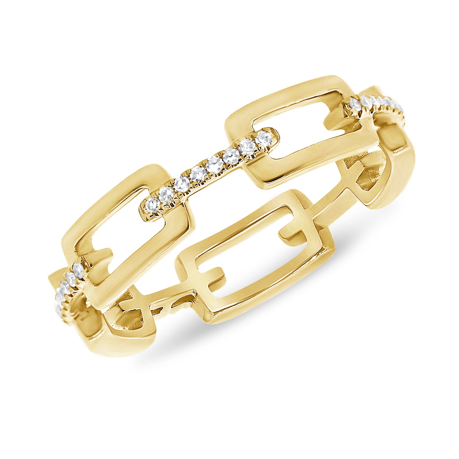 Elevate your style with this 14K Gold Geometric Chain Ring, designed with bold interlocking links and accented by 0.11 carats of sparkling diamonds. Available in 14K yellow, white, or rose gold, this modern diamond ring adds a touch of sophistication to any outfit. Perfect for everyday wear or special occasions, it’s a standout statement piece for any jewelry collection.