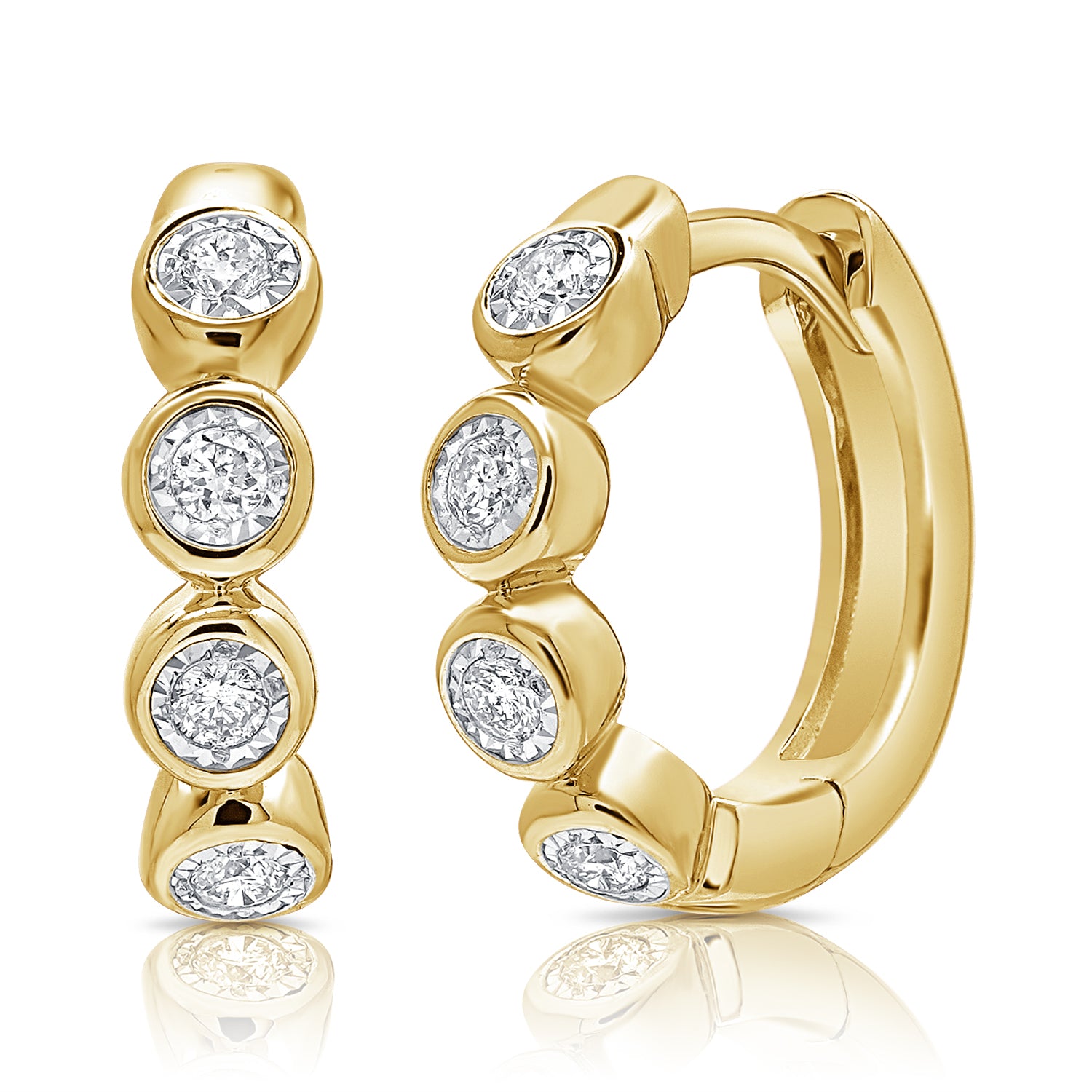 Bezel-Set Diamond Hoop Earrings in 14K Gold | 0.10 CT Miracle-Set Diamonds