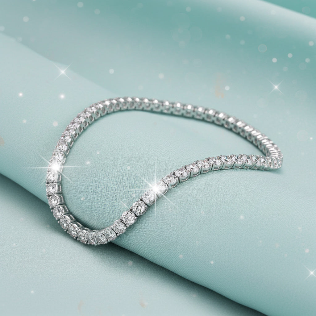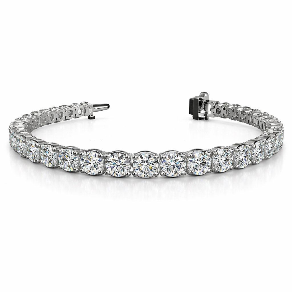 A timeless essential for any fine jewelry collection, this four-prong diamond tennis bracelet features a seamless row of brilliantly set diamonds that radiate classic elegance. Designed to sit beautifully on the wrist, its refined silhouette makes it perfect for everyday luxury or special occasions. Measuring 7 inches in length, this bracelet delivers effortless sophistication and enduring style.