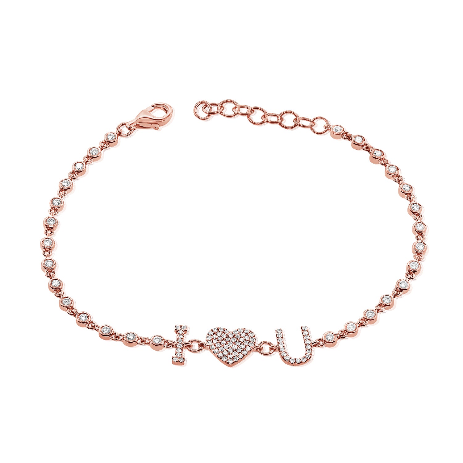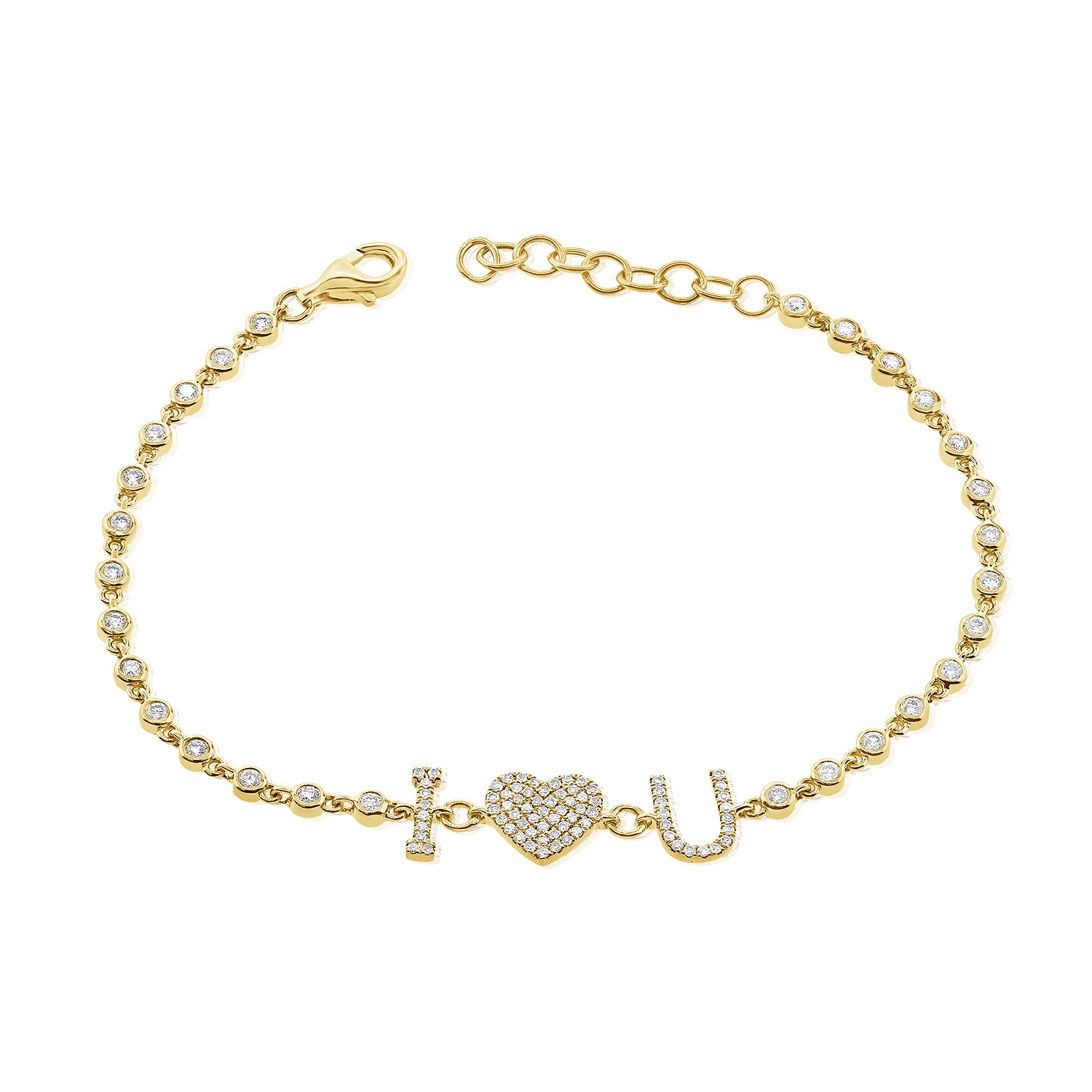 "I Love U" Diamond Pave Bracelet in 14K Gold