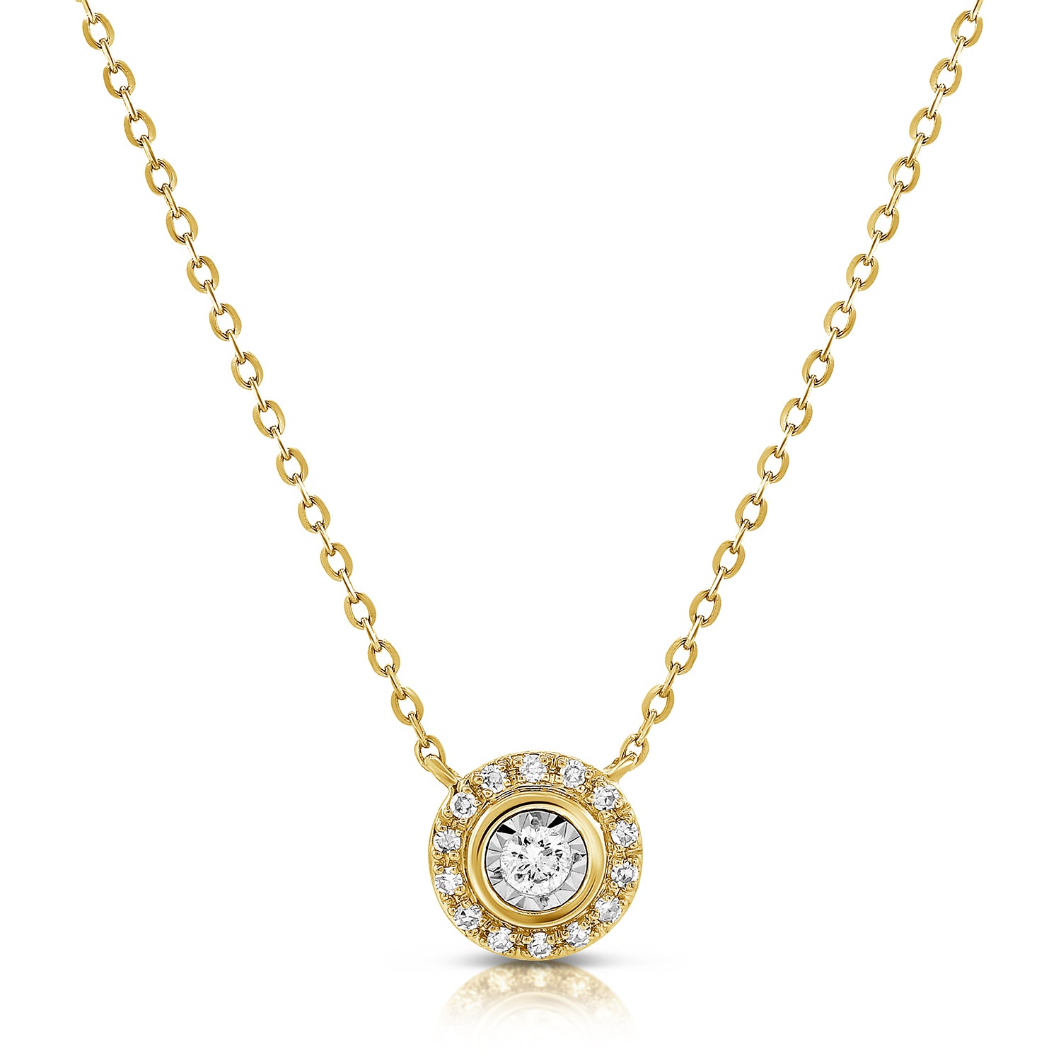 Discover the art of subtle brilliance with this Illusion Set Diamond Necklace, beautifully crafted in 14K gold. Featuring 0.08 carats of diamonds, the illusion setting creates the appearance of larger, more radiant stones, enhancing the necklace's overall sparkle. The sleek and refined design offers a modern yet timeless appeal, making it a versatile piece for any jewelry collection. Perfect for adding a touch of elegance to everyday wear or as a delicate accent for special occasions, this necklace is a sophisticated expression of understated luxury.