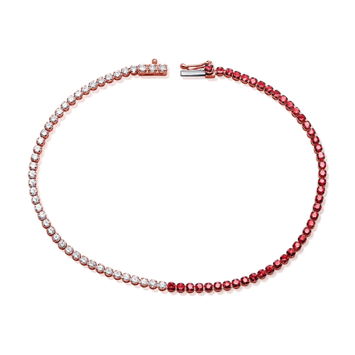 Elevate your jewelry collection with this exquisite 2.23-carat Ruby and Diamond Tennis Bracelet, a timeless symbol of sophistication and grace. Crafted in 14K white, yellow, or rose gold, this stunning bracelet features vibrant rubies and brilliant diamonds in an alternating design that exudes elegance. Each round-cut gemstone is meticulously set to enhance its brilliance, ensuring a radiant display of color and sparkle.