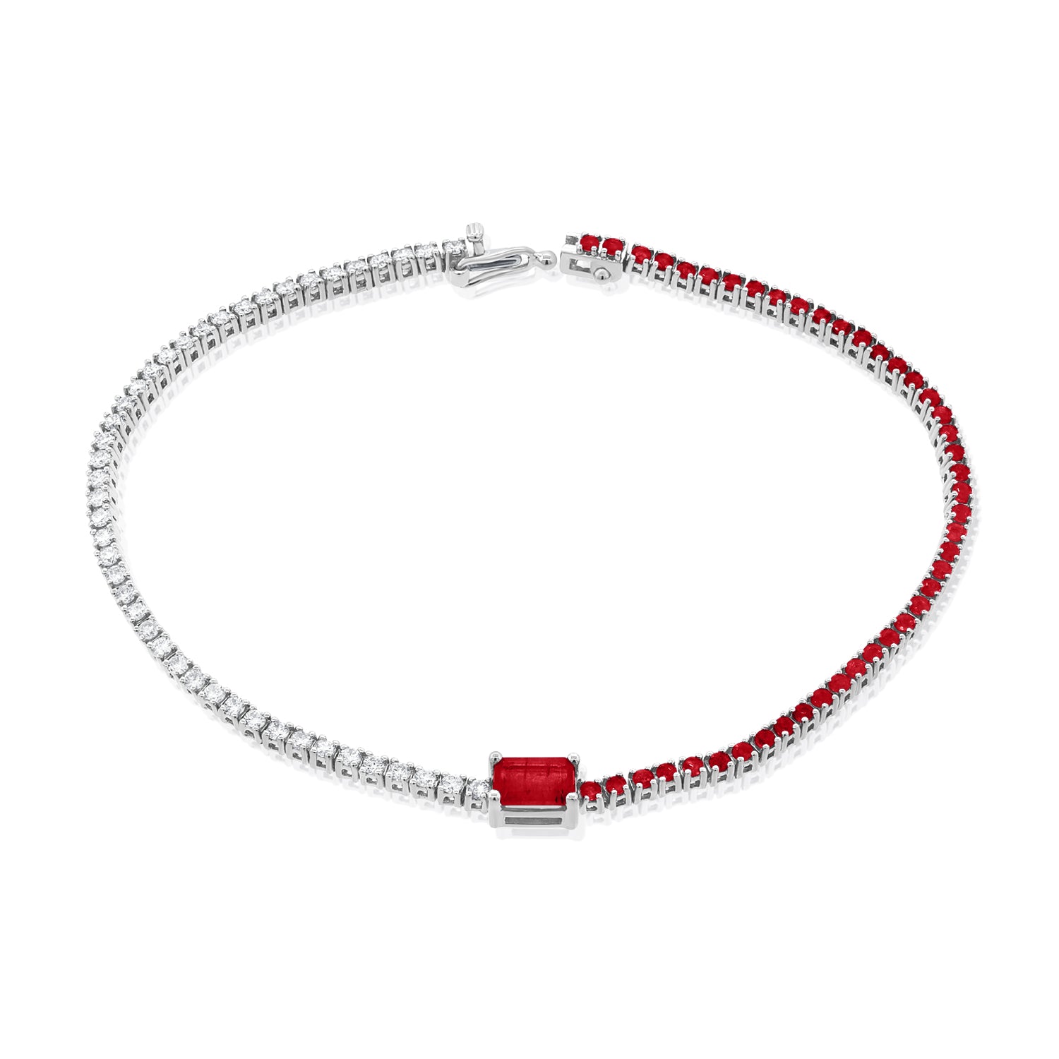 Indulge in the timeless elegance of this ruby and diamond tennis bracelet, masterfully crafted in 14K gold. Featuring a striking 2.85 carat combination of vibrant rubies and brilliant diamonds, this exquisite bracelet is designed to add a luxurious touch to any jewelry collection. The sleek 7-inch design offers a comfortable fit, making it perfect for everyday wear or special occasions. Elevate your style with this radiant piece, a must-have for lovers of fine gemstone jewelry.