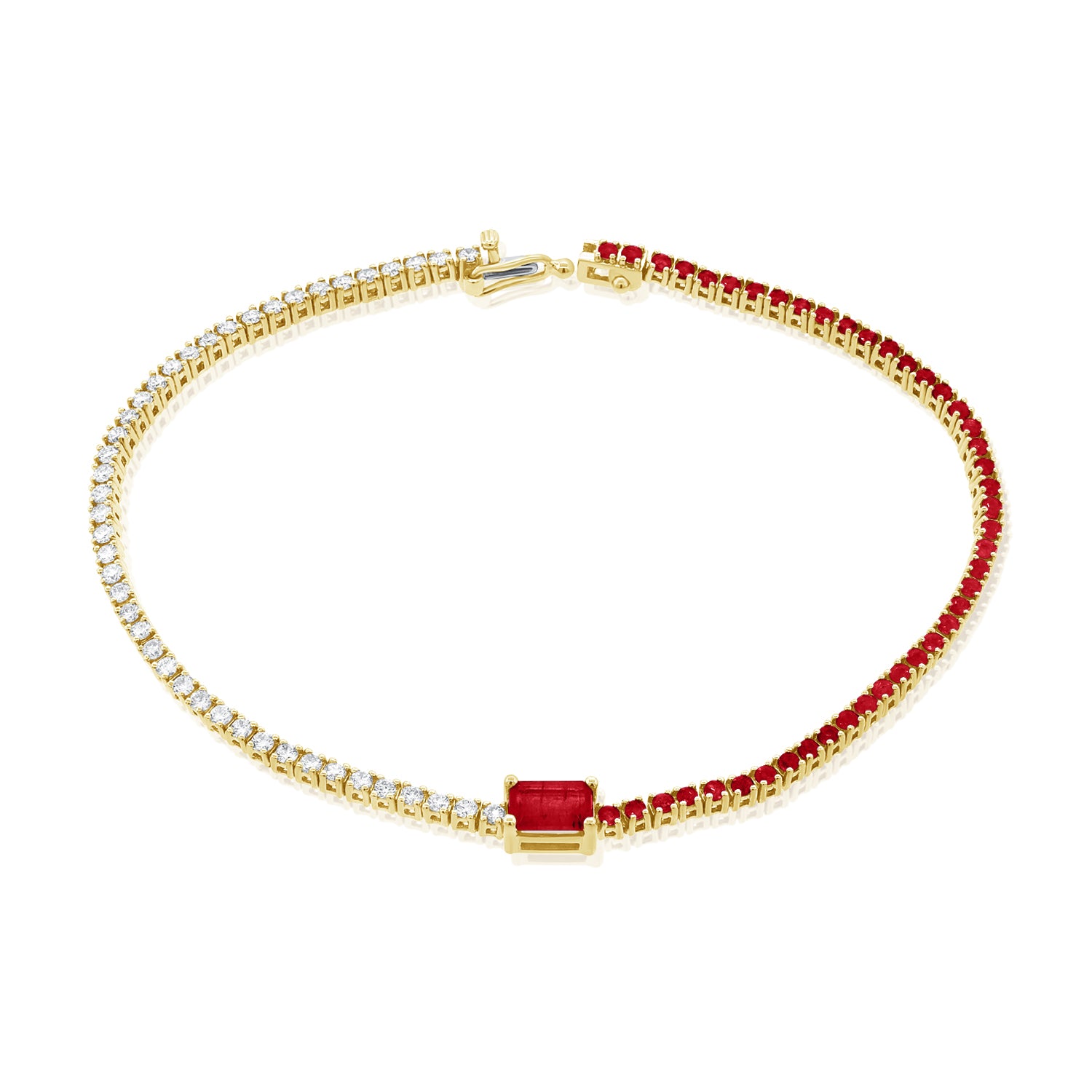 Luxurious 14K Gold Ruby and Diamond Tennis Bracelet