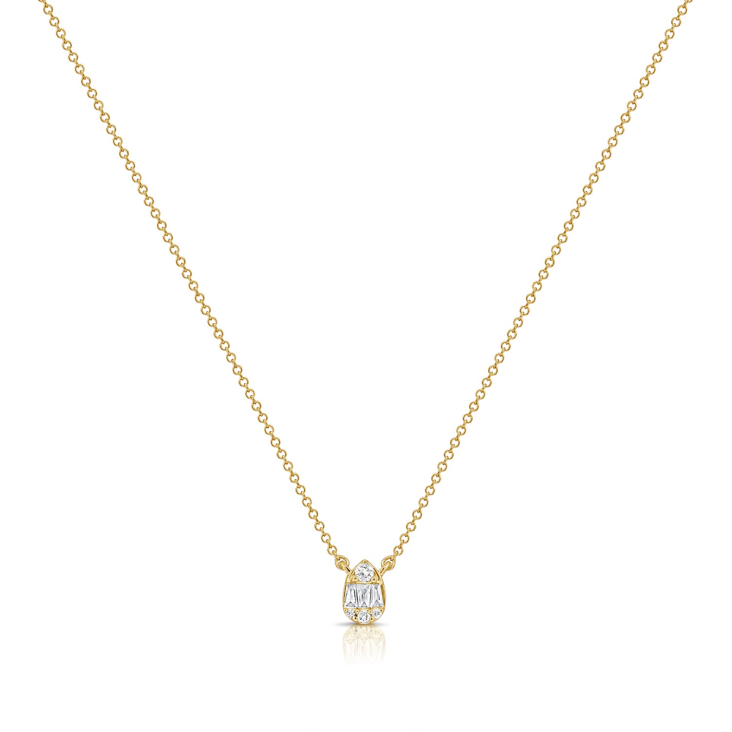 Embrace elegance in miniature with our Mini Pear-Shaped Necklace, crafted with exquisite detail in shimmering 14K gold. This petite yet dazzling necklace features a charming pear-shaped pendant, meticulously designed to capture the essence of timeless beauty.