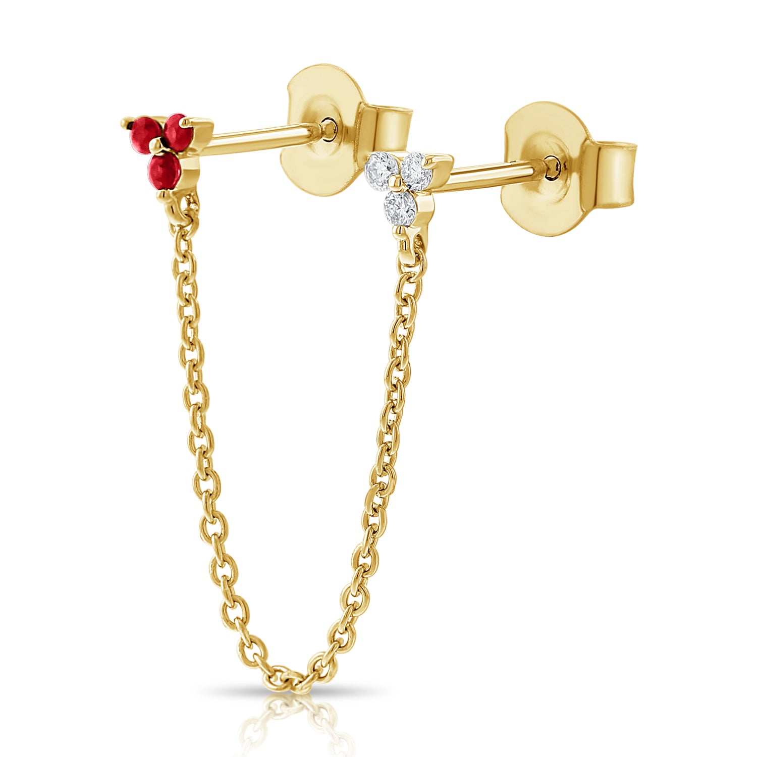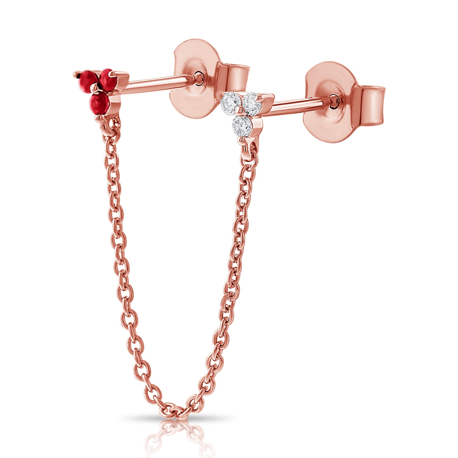 These 14K gold diamond chain stud earrings feature a unique double-stud design connected by a delicate chain and accented with 0.16 carats of sparkling round diamonds. Modern, stylish, and elegant, they add a distinctive touch perfect for everyday wear or special occasions. Available in 14K white, yellow, or rose gold, these earrings make a standout addition to any jewelry collection.