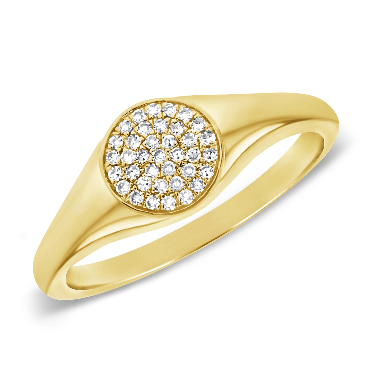 14K Gold Diamond Pinky Ring – Modern Pavé Round Dome Design (0.08ct)