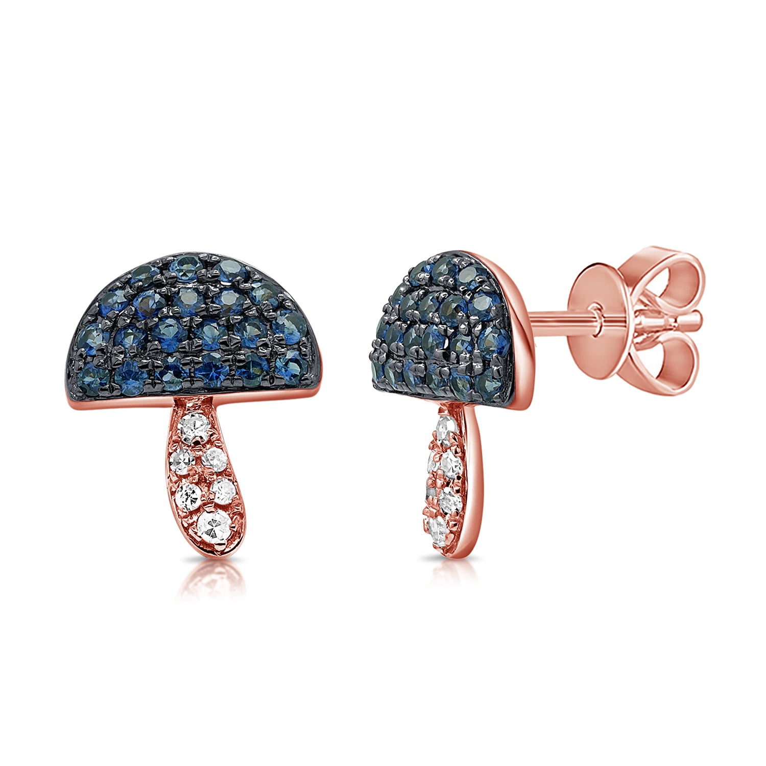 Discover the perfect blend of enchantment and elegance with these Sapphire & Diamonds Mushroom Stud Earrings. Expertly crafted in 14K gold, these whimsical earrings feature a charming mushroom design, adorned with stunning sapphires and dazzling diamonds. With a total carat weight of 0.42, these gems offer a captivating sparkle that adds a unique touch to any outfit.