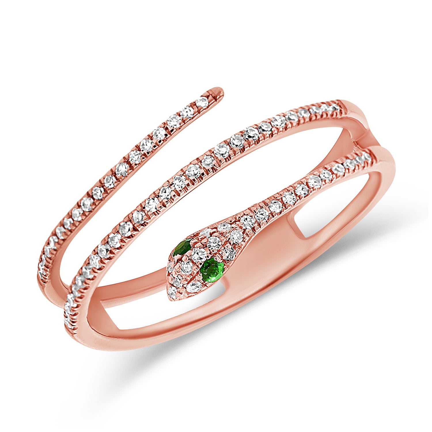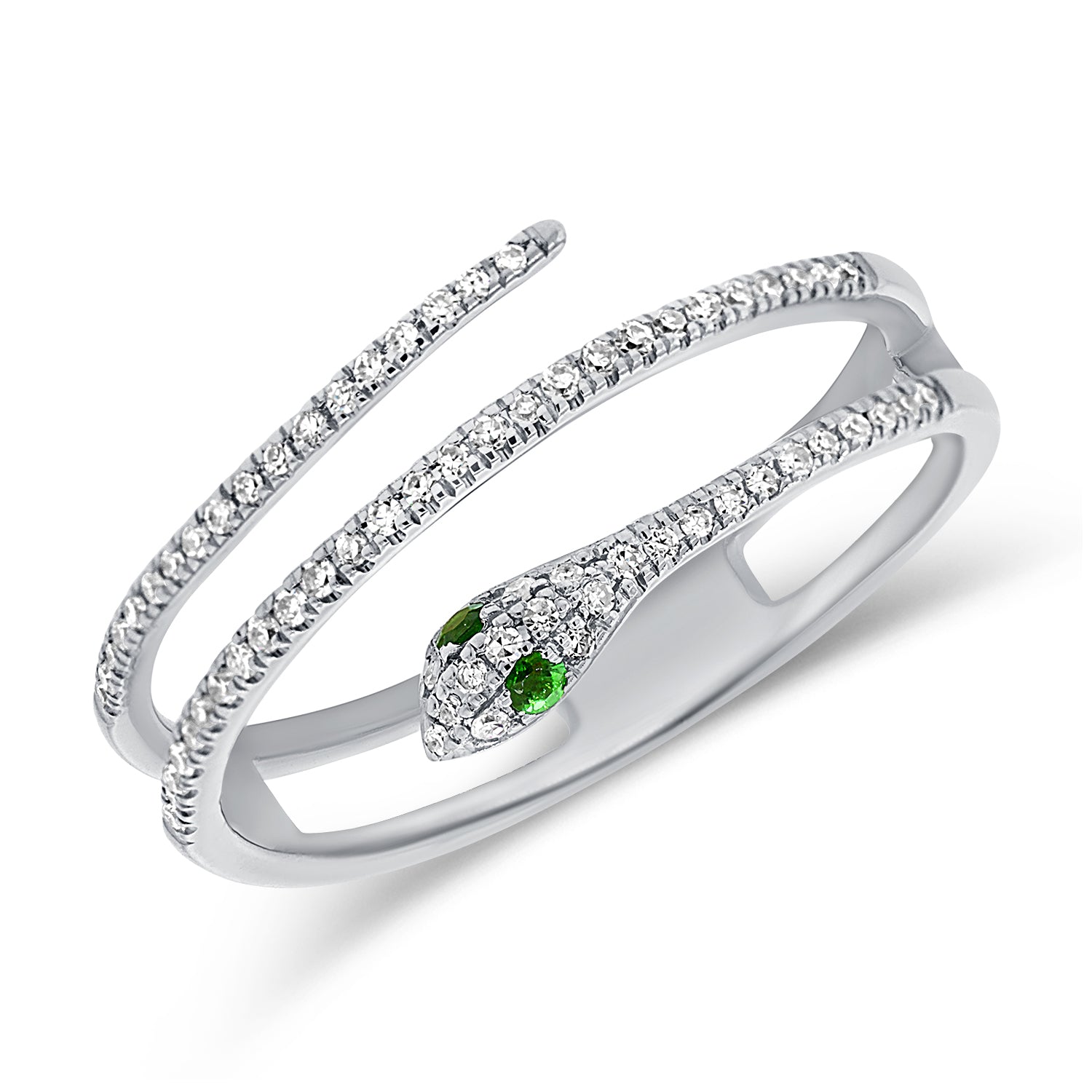 0.19 Carat Green Tsavorite and Diamond Snake Wrap Ring in 14K White, Yellow, or Rose Gold