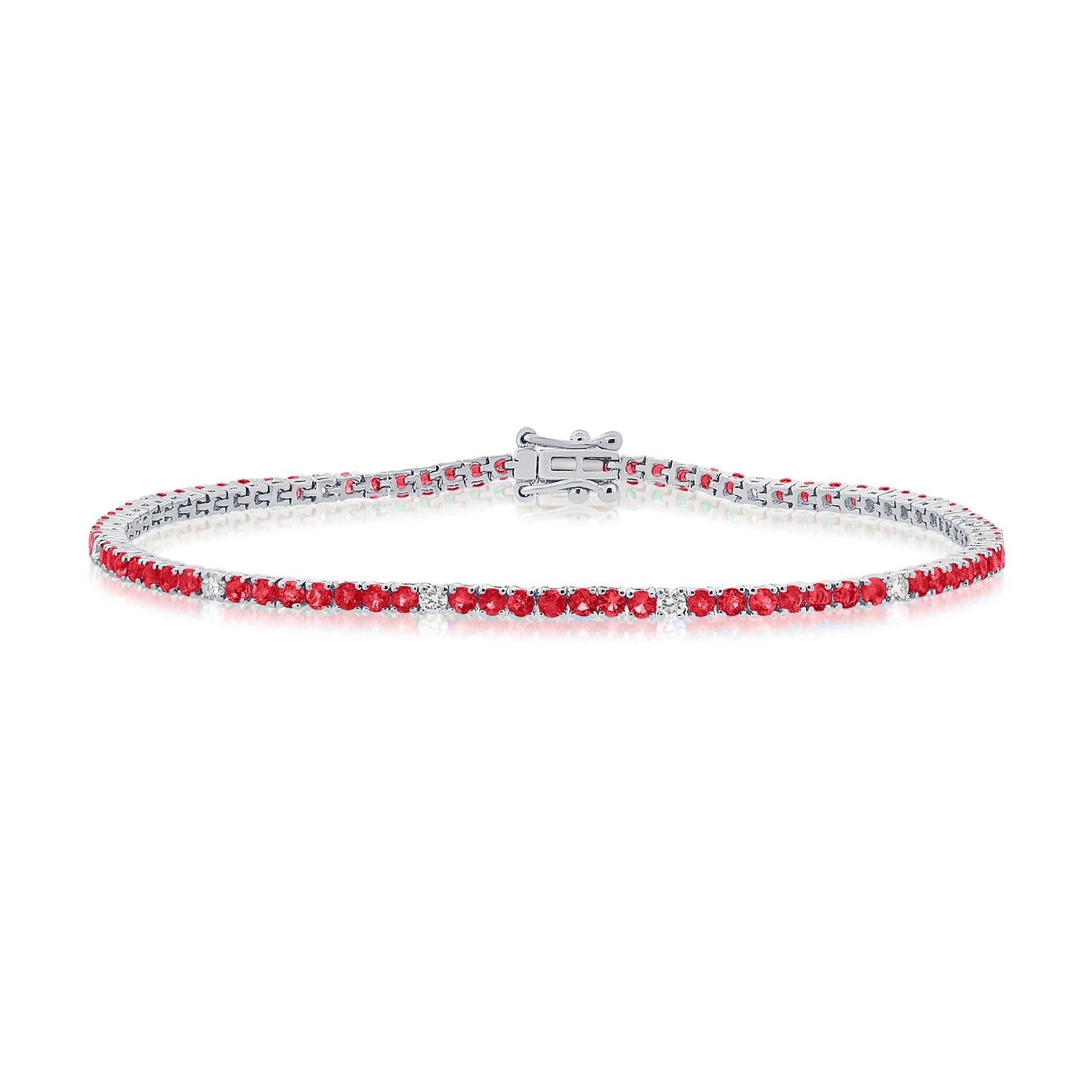 Elevate your jewelry collection with this exquisite 14K Gold Ruby and Diamond Tennis Bracelet, featuring 2.49 carats of natural rubies and dazzling diamonds. The classic tennis design is adorned with vibrant round-cut rubies, accented by brilliant white diamonds for a timeless and sophisticated look. Crafted in your choice of 14K white, yellow, or rose gold, this elegant bracelet is the perfect statement piece for any occasion. Secure clasp closure ensures a comfortable and secure fit. A must-have for lovers of fine jewelry and timeless luxury.