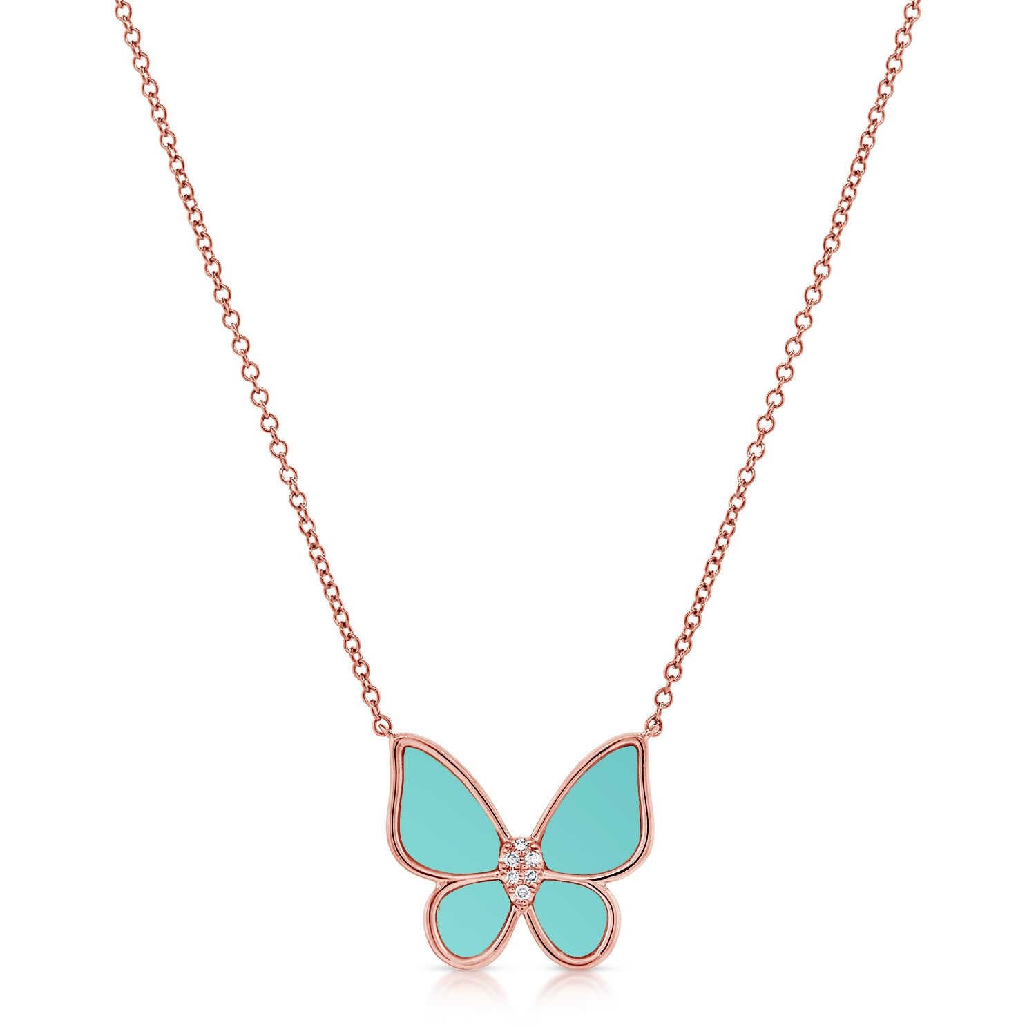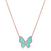 Turquoise & Diamond Butterfly Necklace made in 14K Gold