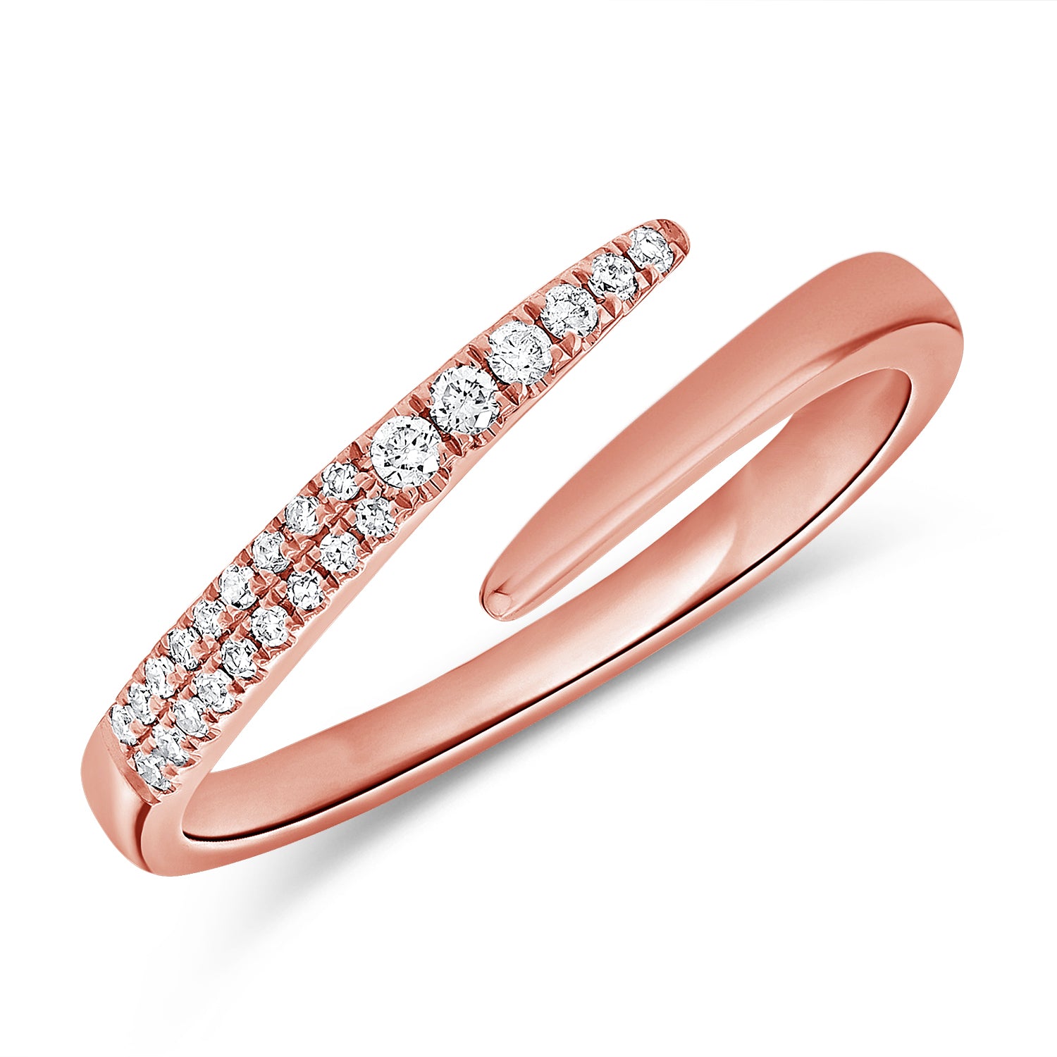 Elegant and modern, this 0.10-carat Diamond Wrap Ring exudes timeless sophistication. Featuring two gracefully curved rows of shimmering round-cut diamonds, this open design wraps the finger with subtle sparkle and style. Available in 14K white, yellow, or rose gold.